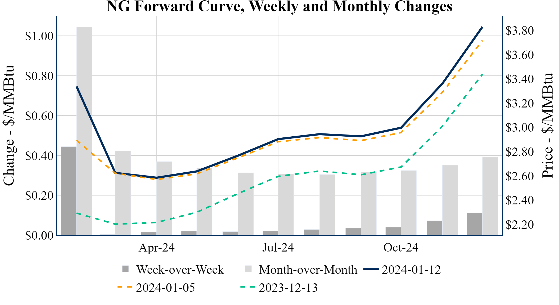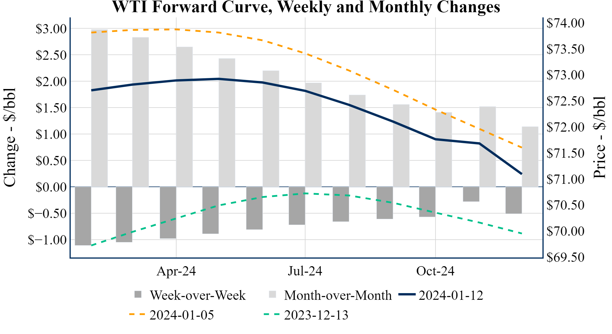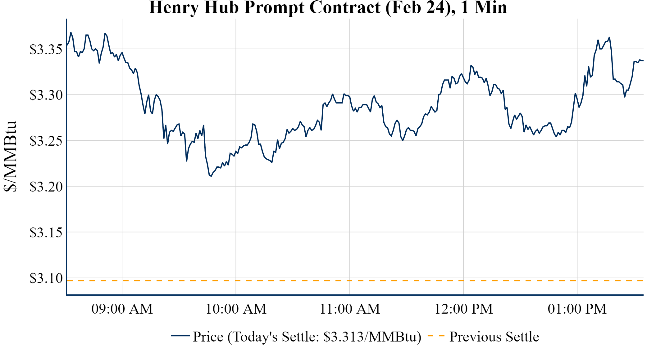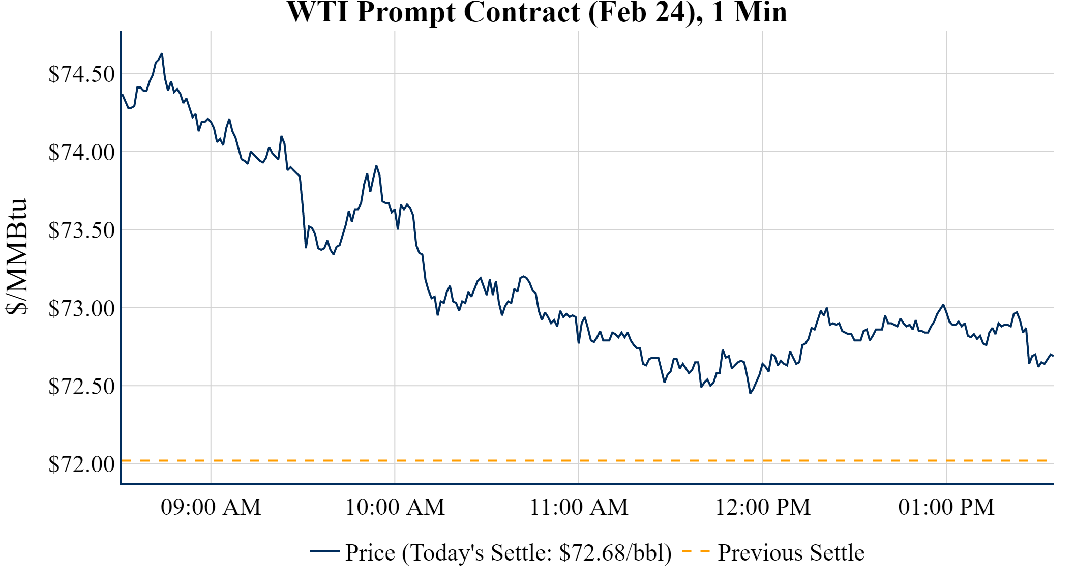 Prompt-Month Henry Hub (Feb 24) was up $0.216 on the day, to settle at $3.313Prompt-Month WTI (Feb 24) was up $0.66 on the day, to settle at $72.68