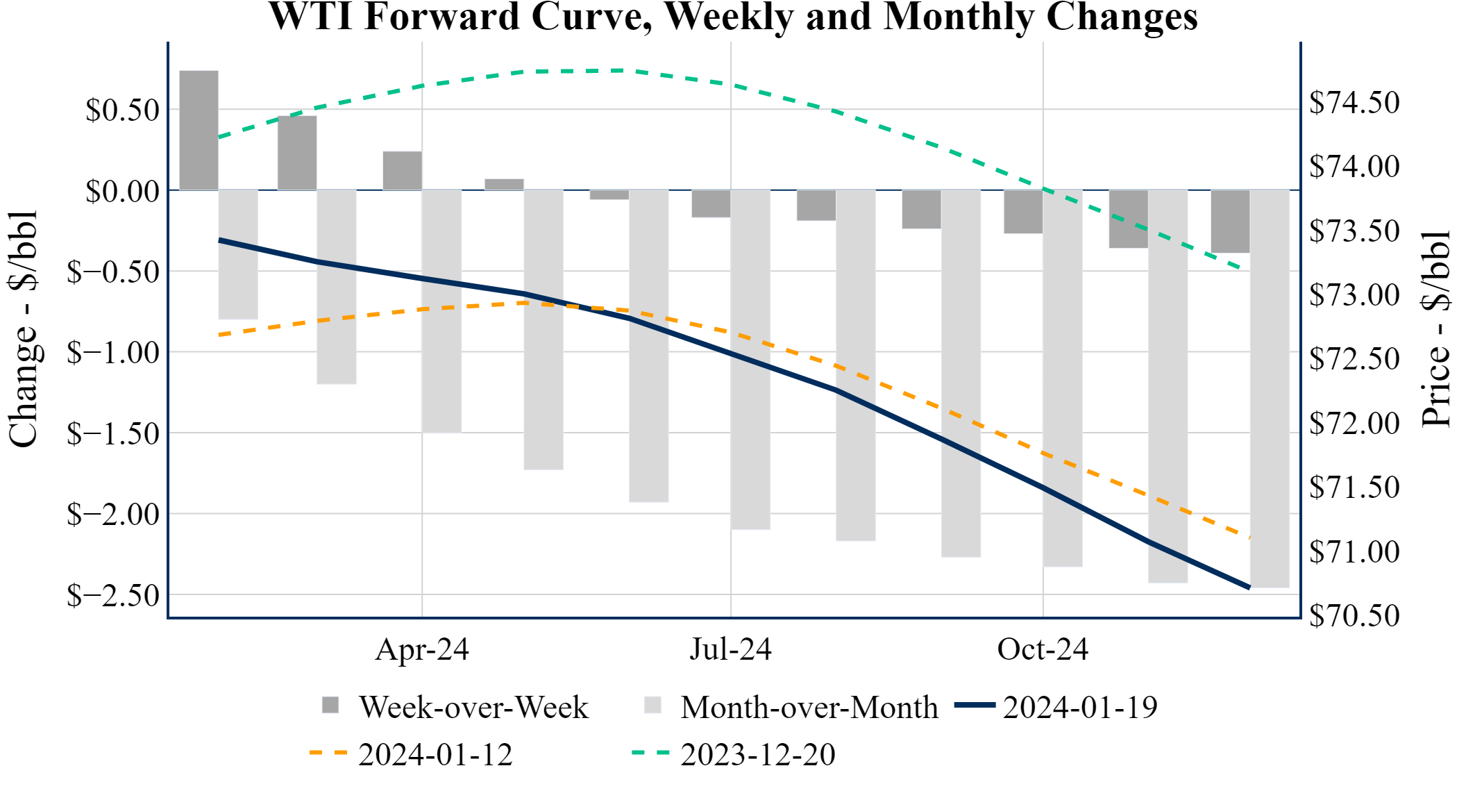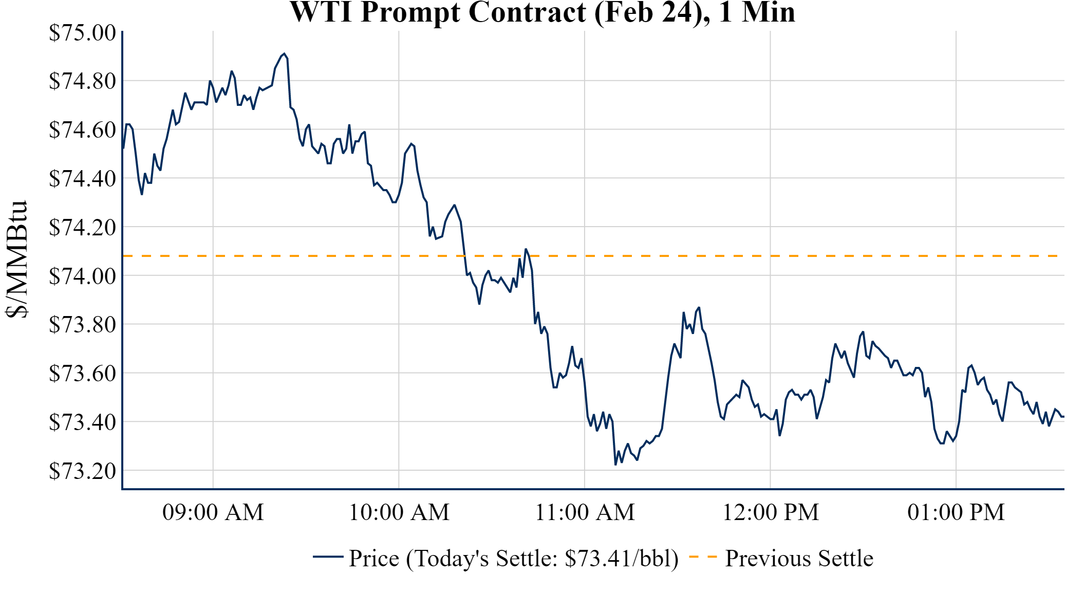 Prompt-Month WTI (Feb 24) was down $-0.67 on the day, to settle at $73.41
