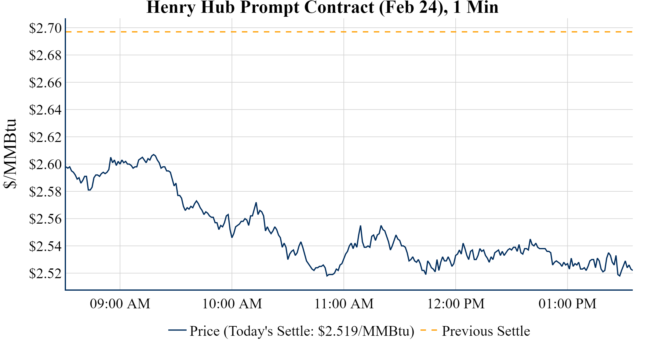 Prompt-Month Henry Hub (Feb 24) was down $-0.178 on the day, to settle at $2.519