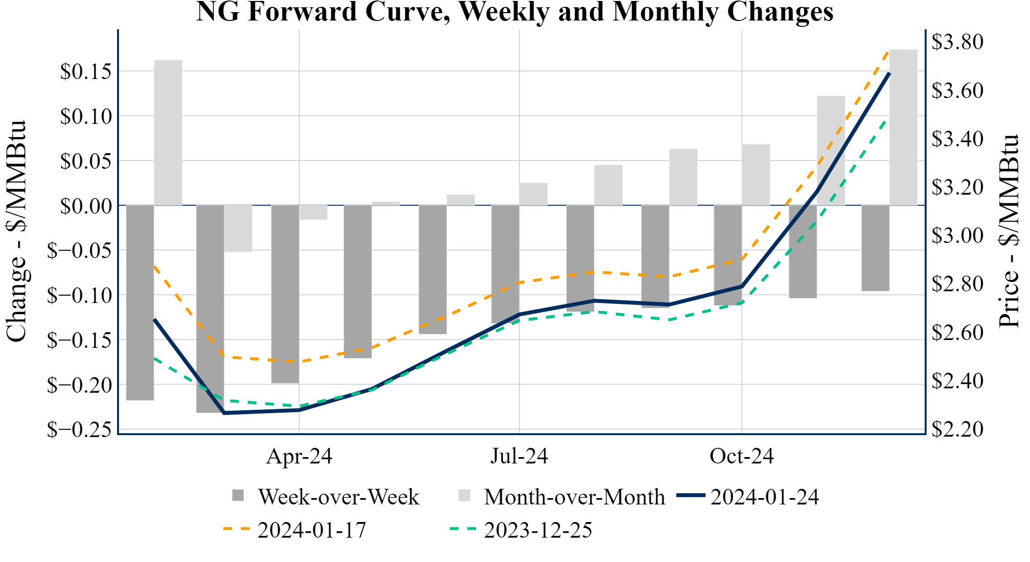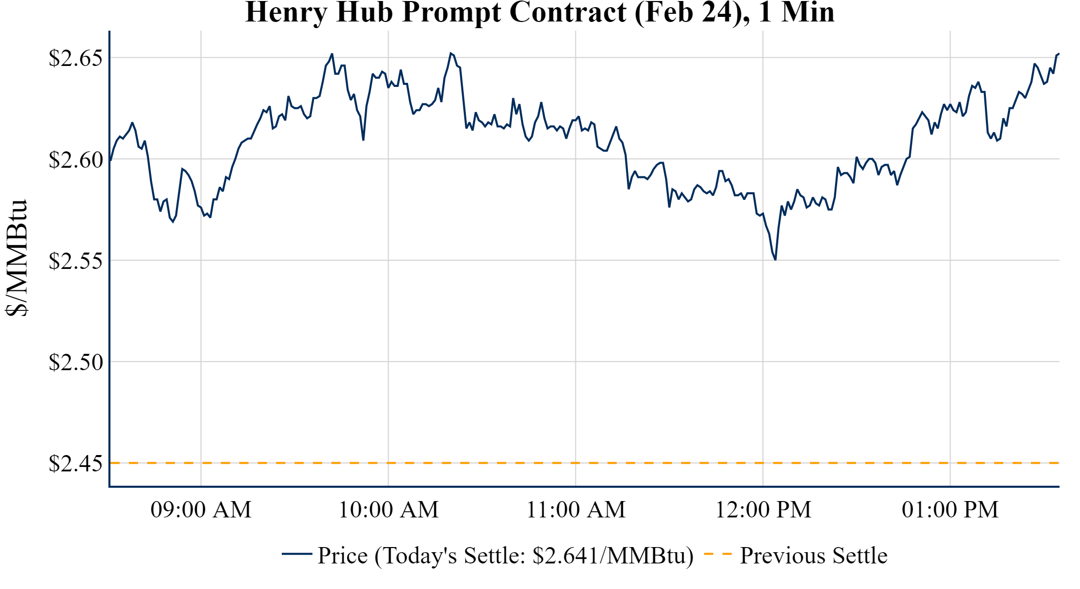 Prompt-Month Henry Hub (Feb 24) was up $0.191 on the day, to settle at $2.641