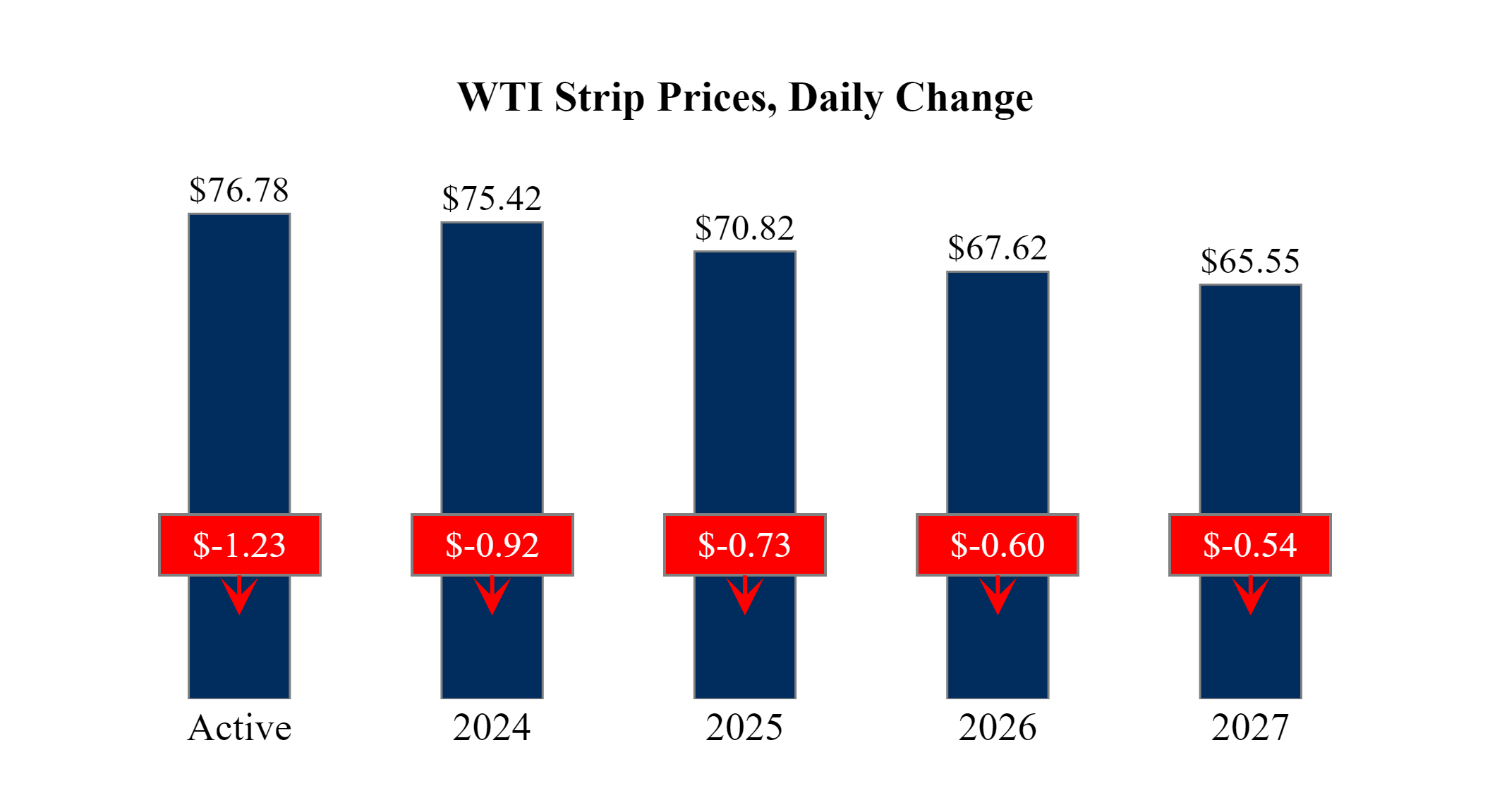 Prompt-Month WTI (Mar 24) was down $-1.23 on the day, to settle at $76.78