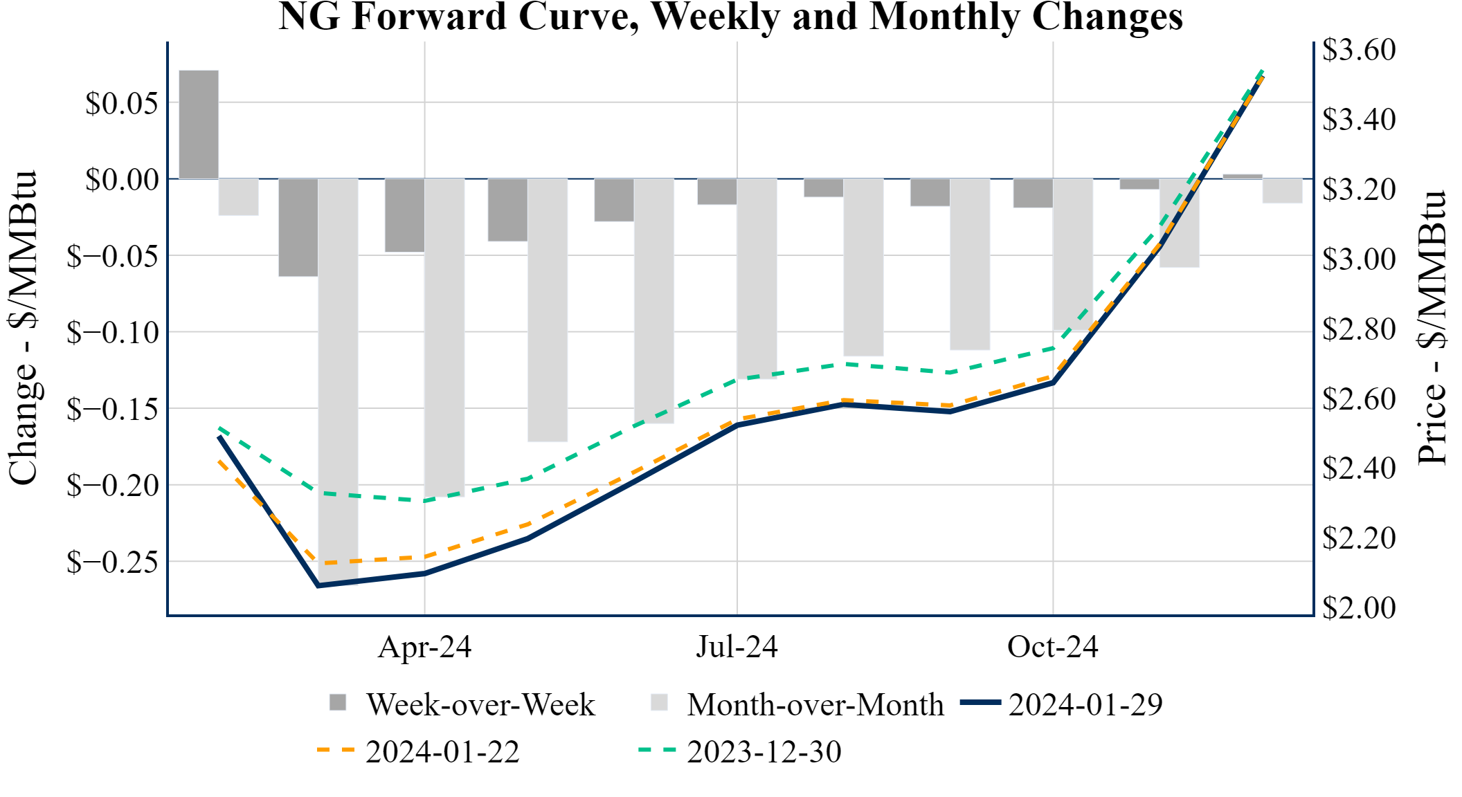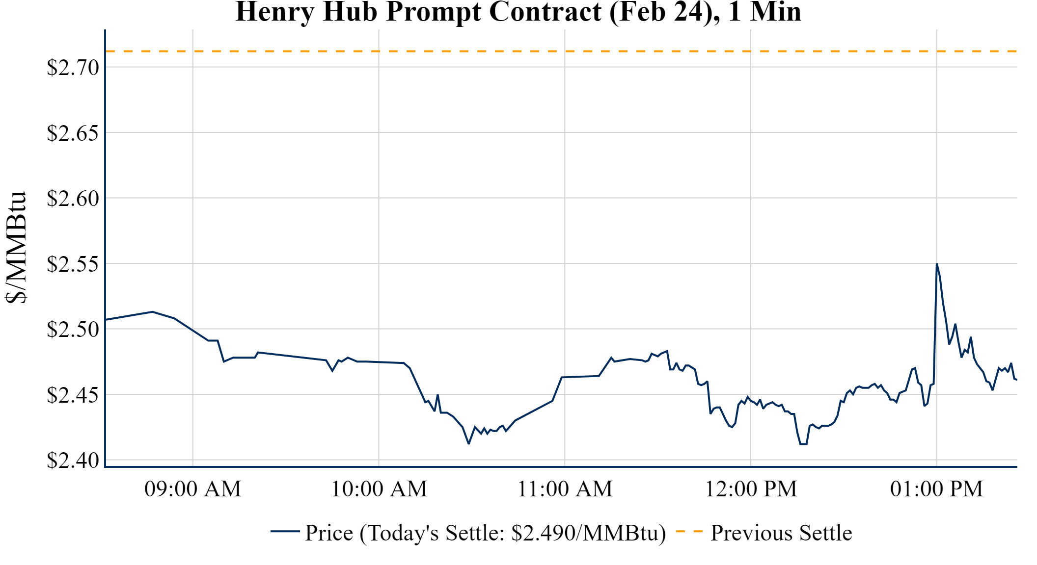 Prompt-Month Henry Hub (Feb 24) was down $-0.222 on the day, to settle at $2.490