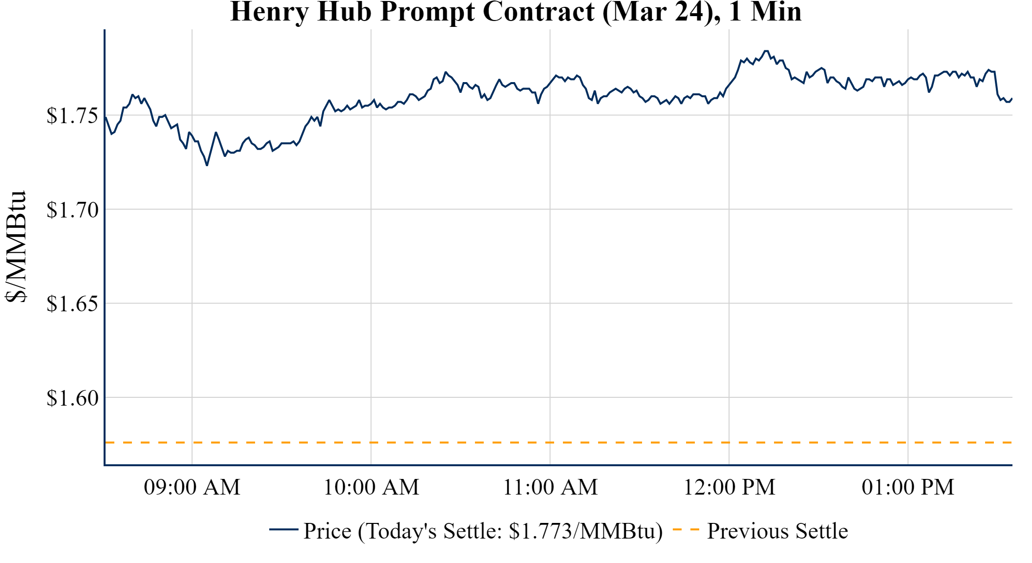 Prompt-Month Henry Hub (Mar 24) was up $0.197 on the day, to settle at $1.773