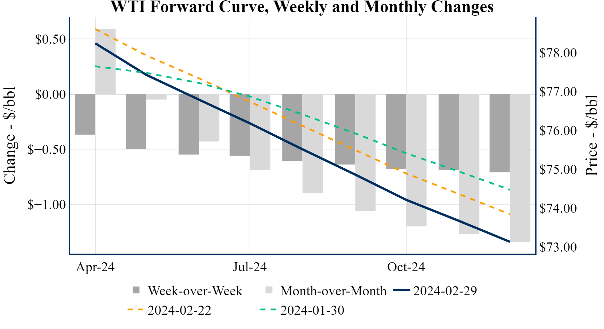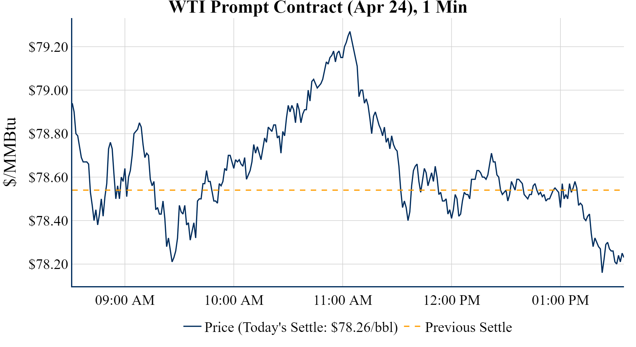 Prompt-Month WTI (Apr 24) was down $-0.28 on the day, to settle at $78.26