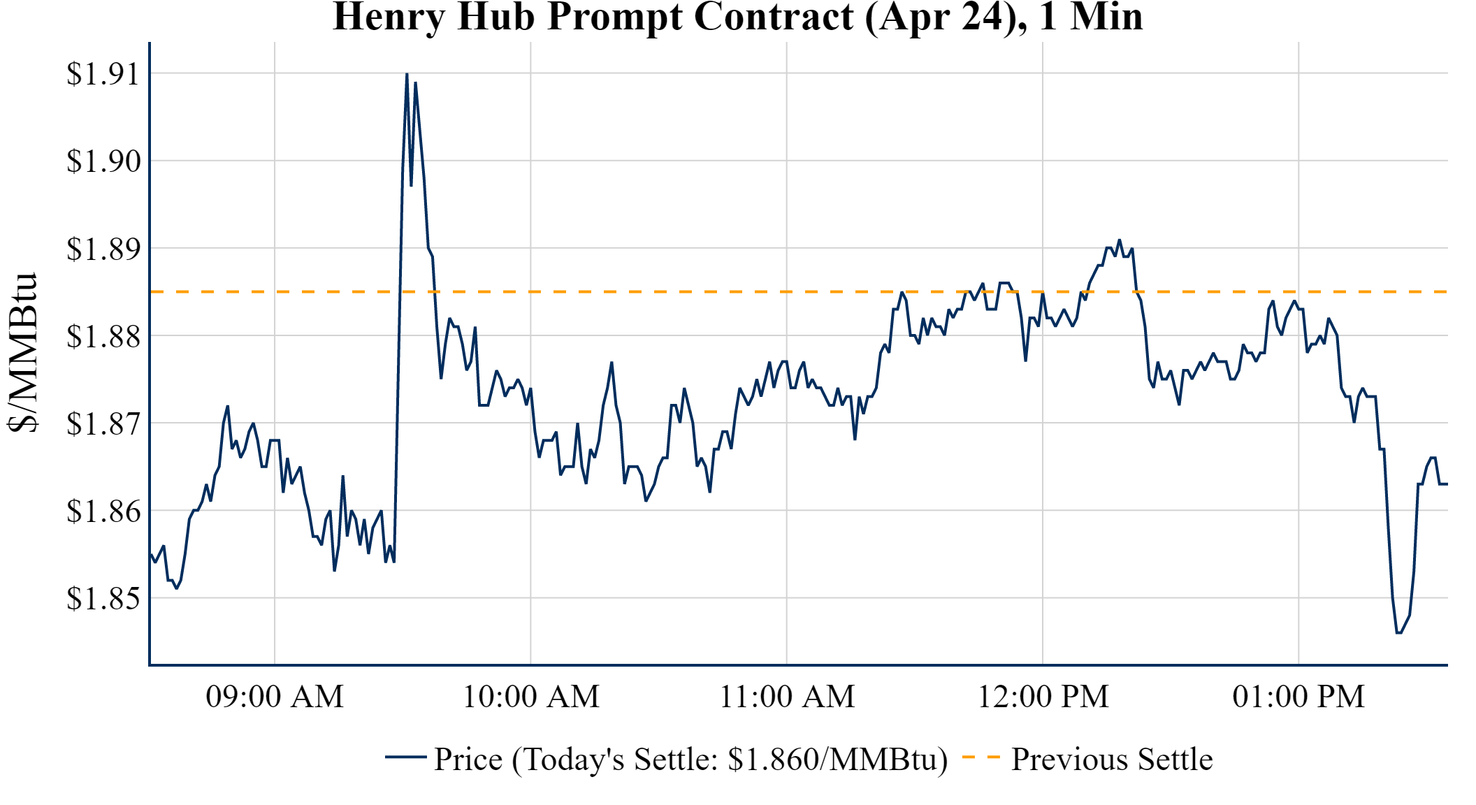 Prompt-Month Henry Hub (Apr 24) was down $-0.025 on the day, to settle at $1.860