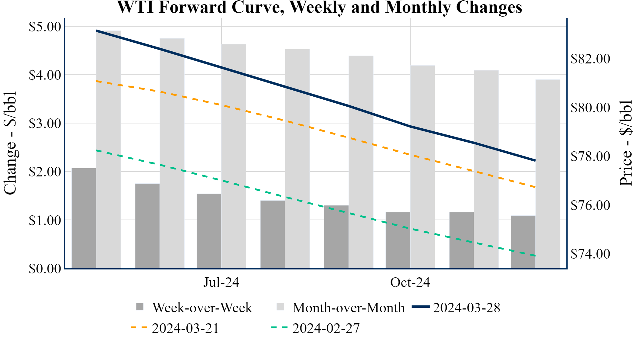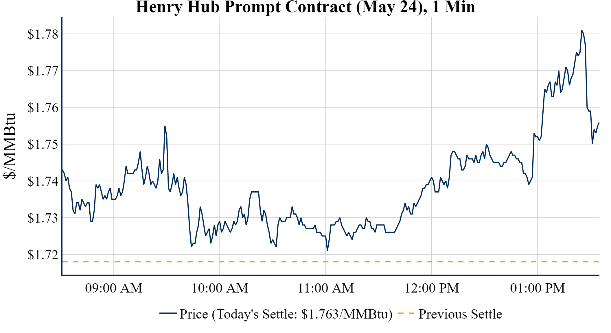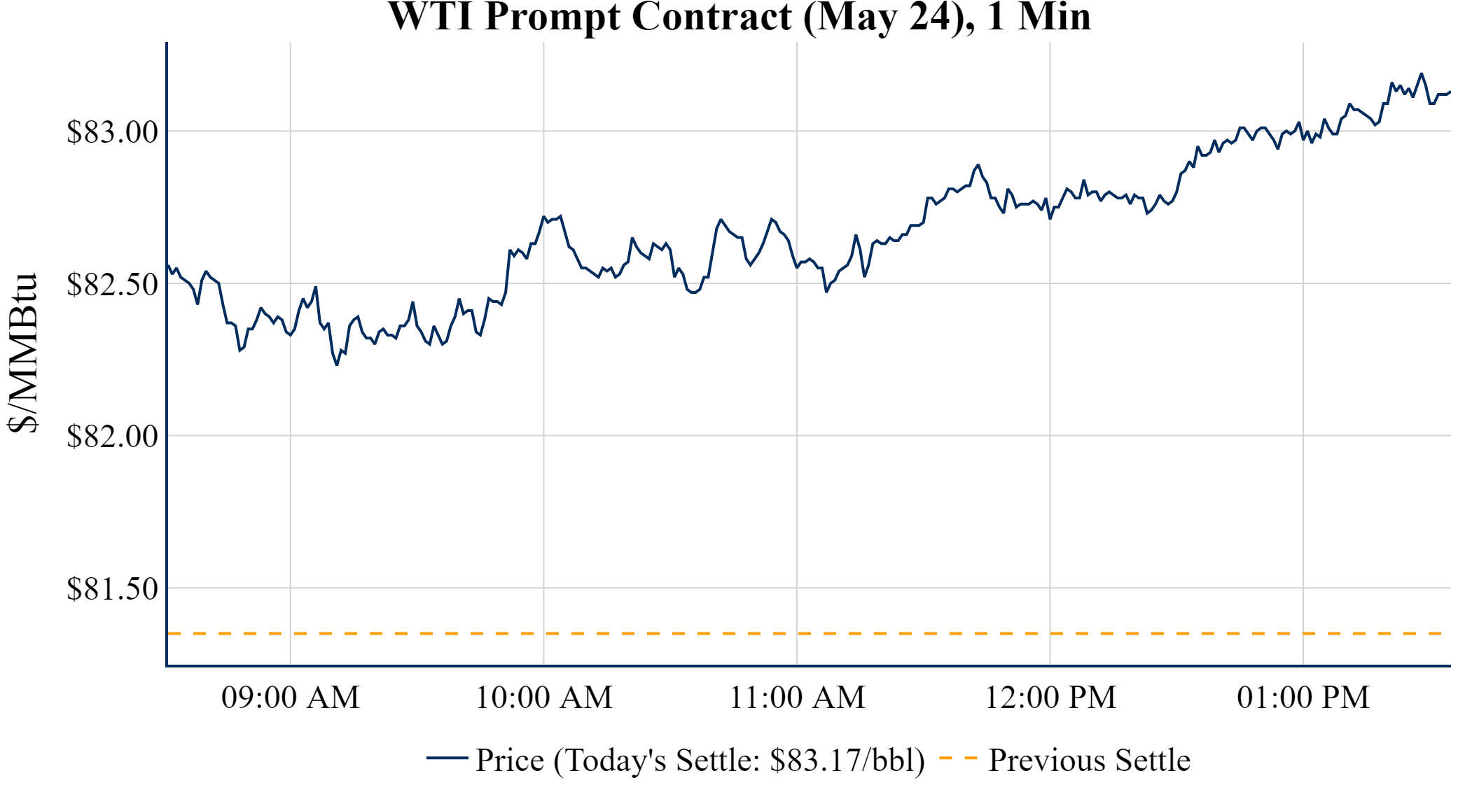 Prompt-Month Henry Hub (May 24) was up $0.045 on the day, to settle at $1.763Prompt-Month WTI (May 24) was up $1.82 on the day, to settle at $83.17