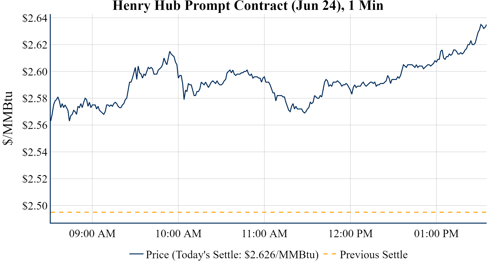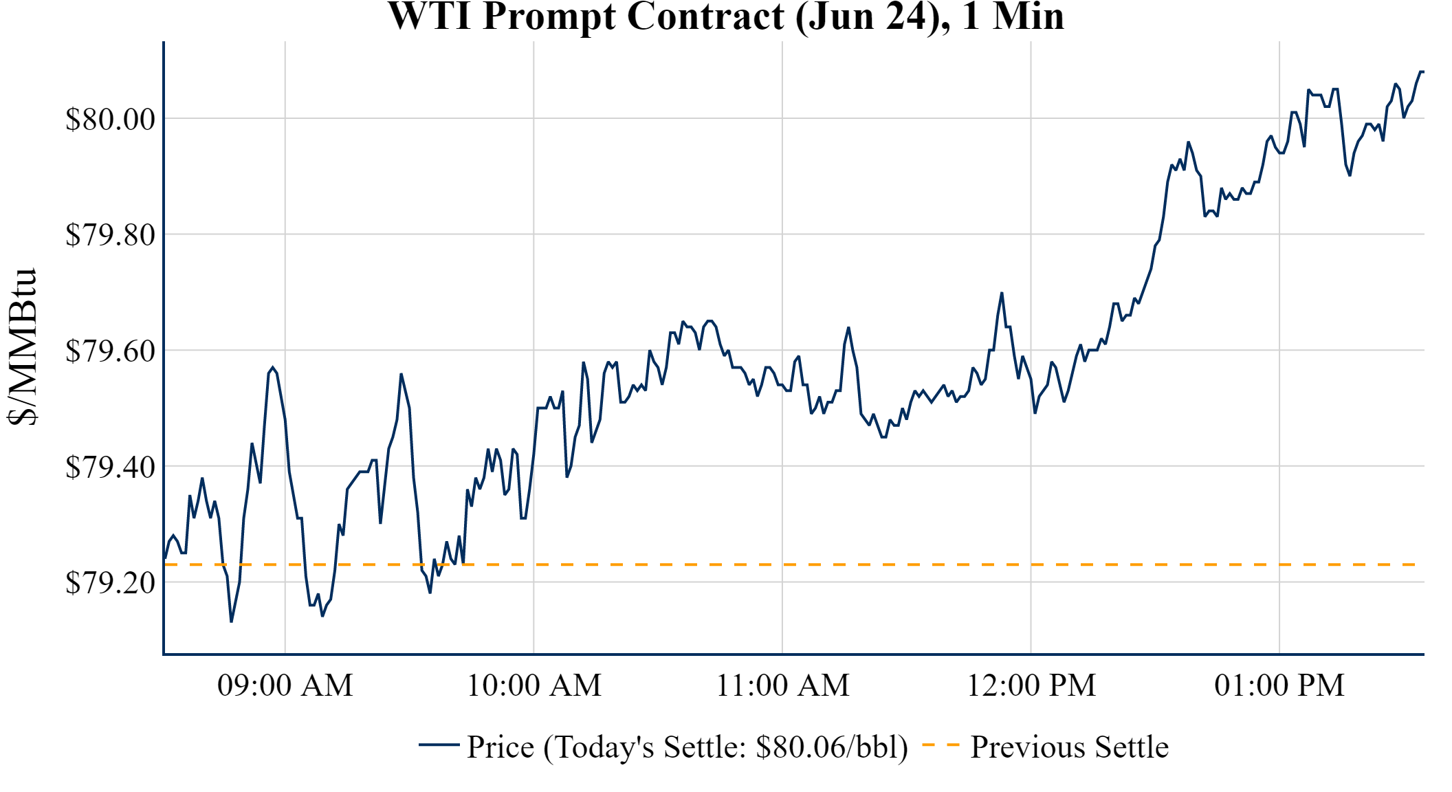 Prompt-Month Henry Hub (Jun 24) was up $0.131 on the day, to settle at $2.626Prompt-Month WTI (Jun 24) was up $0.83 on the day, to settle at $80.06