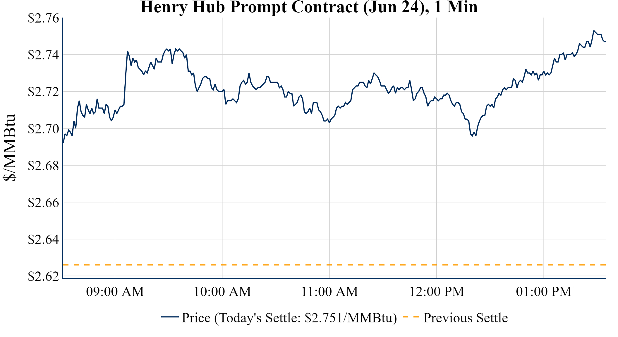 Prompt-Month Henry Hub (Jun 24) was up $0.125 on the day, to settle at $2.751 Prompt-Month WTI (Jun 24) was down $-0.26 on the day, to settle at $79.80