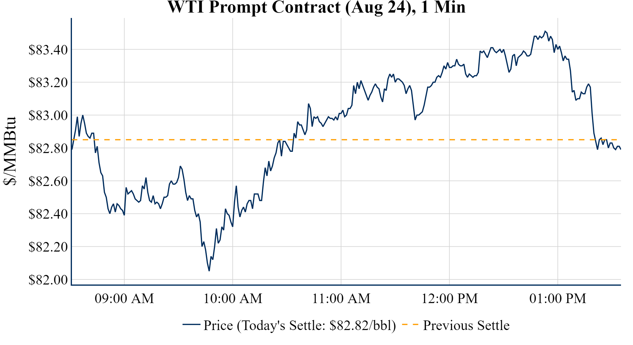 Prompt-Month WTI (Aug 24) was down $-0.03 on the day, to settle at $82.82