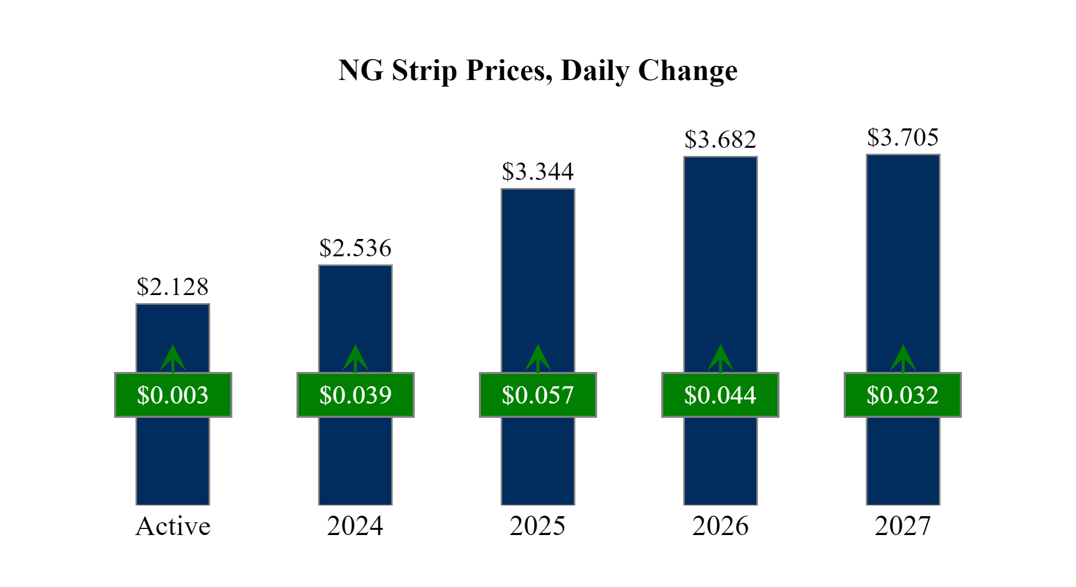 Prompt-Month Henry Hub (Aug 24) was up $0.003 on the day, to settle at $2.128
