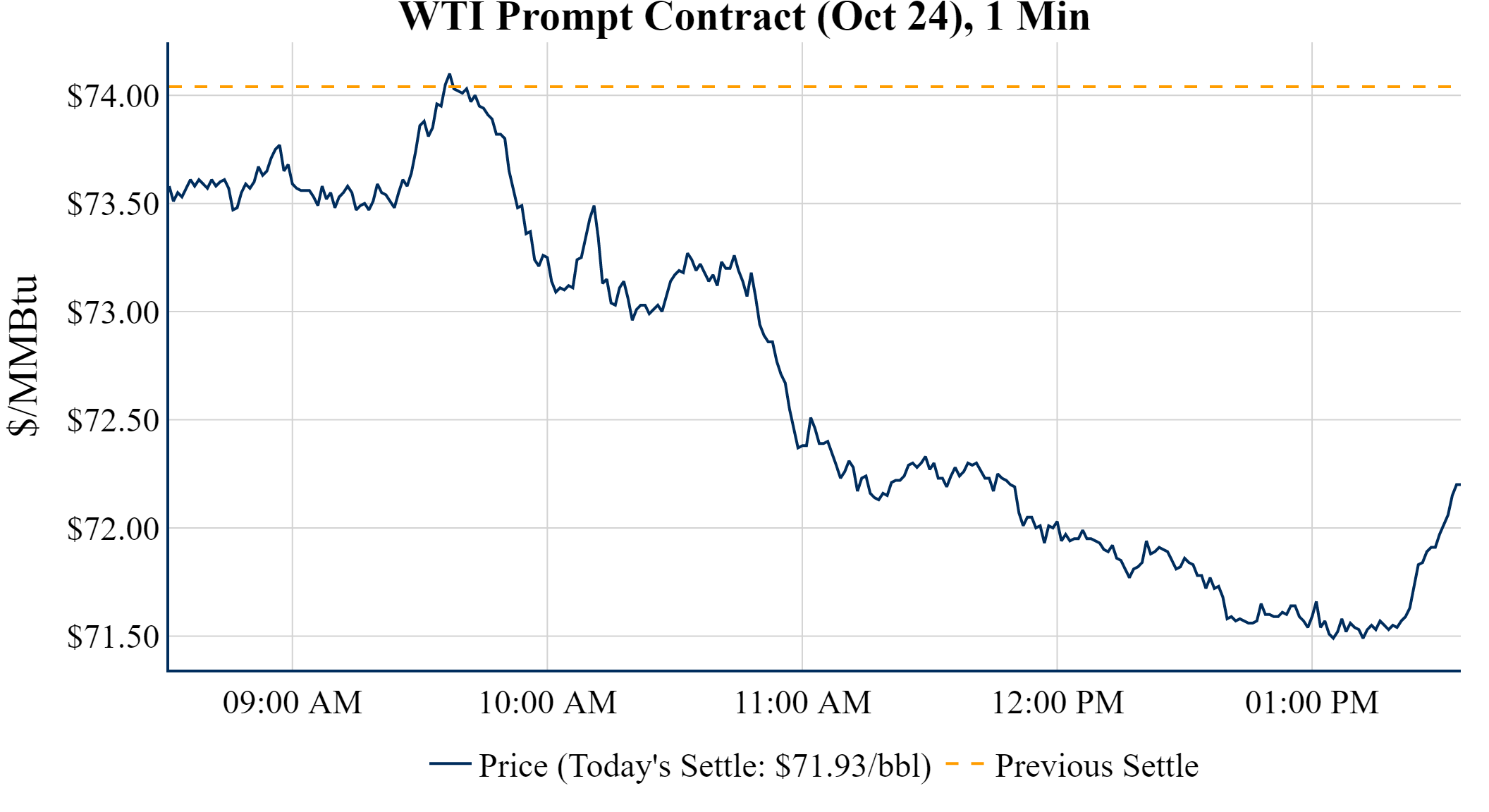 Prompt-Month WTI (Oct 24) was down $-1.24 on the day, to settle at $71.93