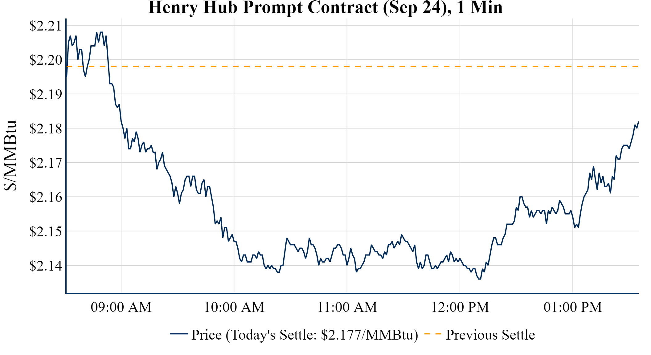 Prompt-Month Henry Hub (Sep 24) was down $-0.021 on the day, to settle at $2.177