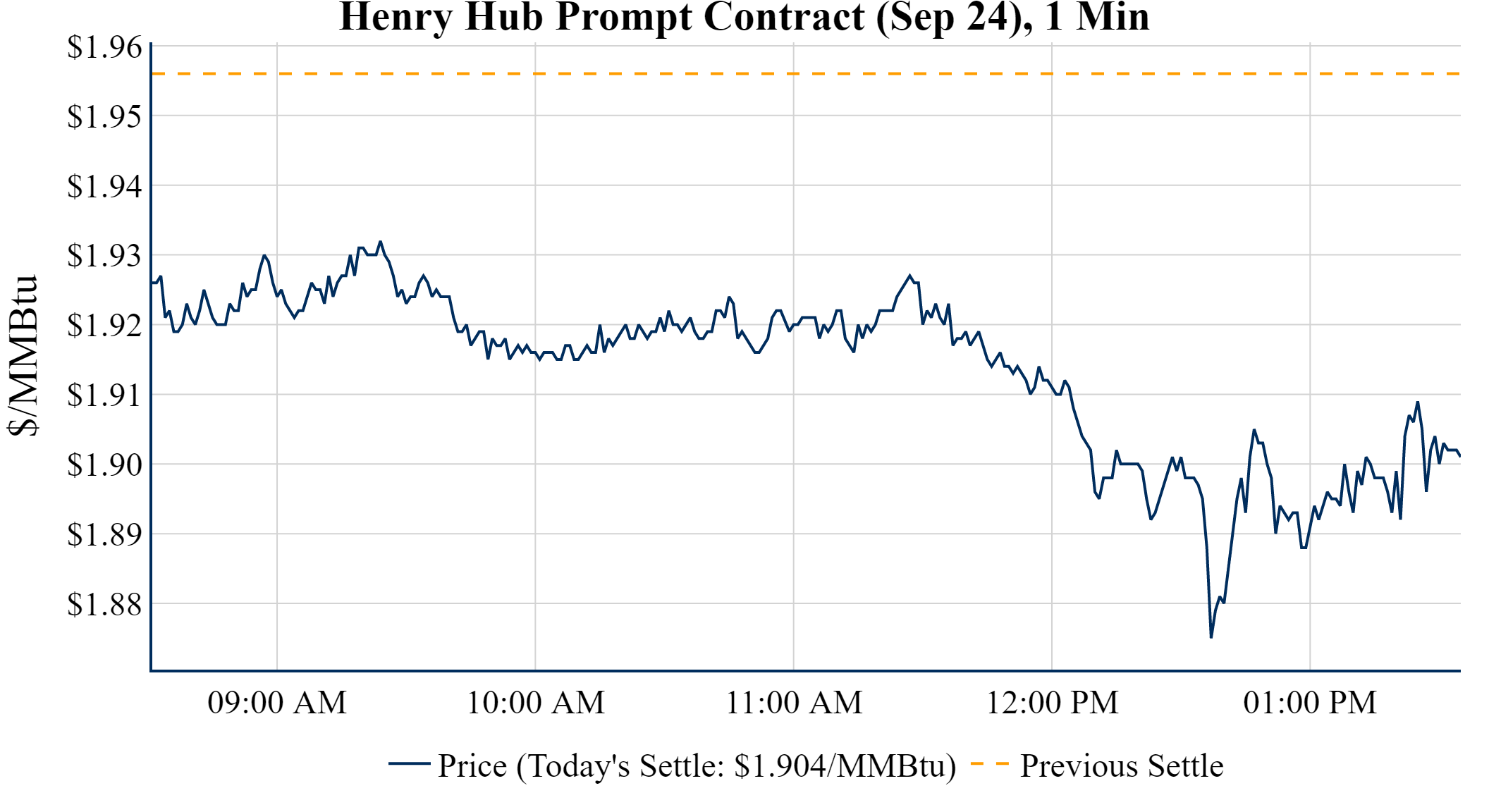 Prompt-Month Henry Hub (Sep 24) was down $-0.052 on the day, to settle at $1.904