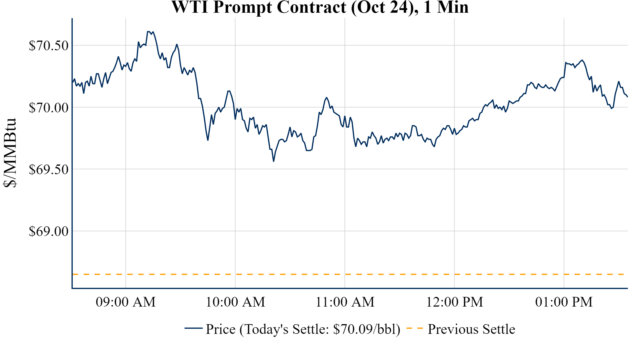 Prompt-Month WTI (Oct 24) was up $1.44 on the day, to settle at $70.09