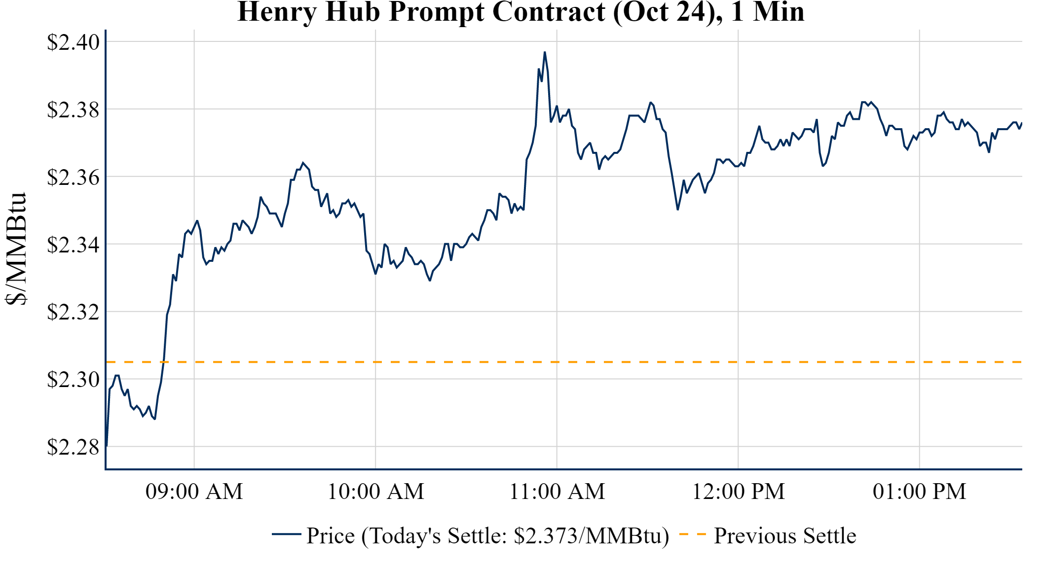 Prompt-Month Henry Hub (Oct 24) was up $0.068 on the day, to settle at $2.373