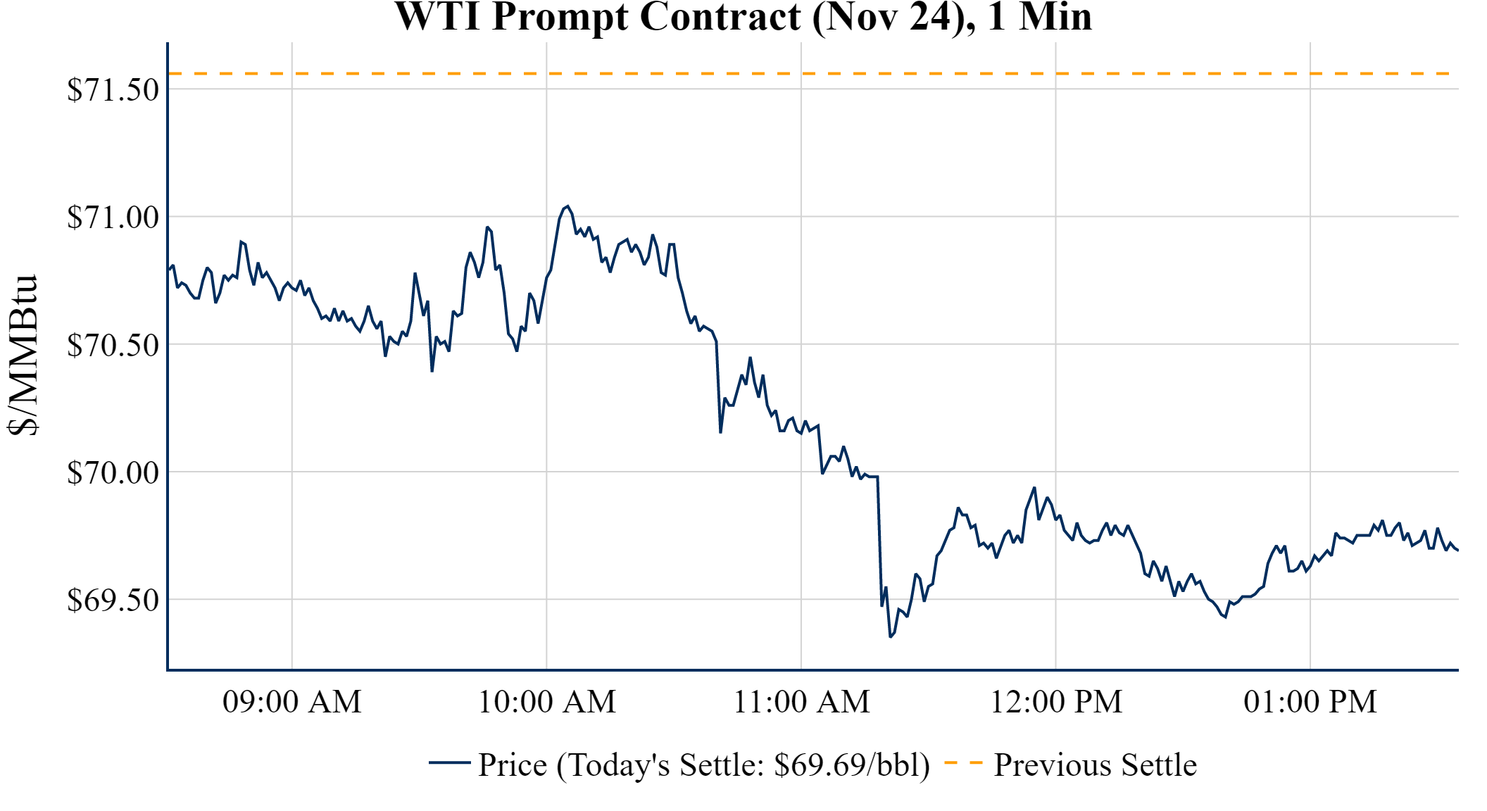 Prompt-Month Henry Hub (Oct 24) was up $0.086 on the day, to settle at $2.637 Prompt-Month WTI (Nov 24) was down $-1.87 on the day, to settle at $69.69