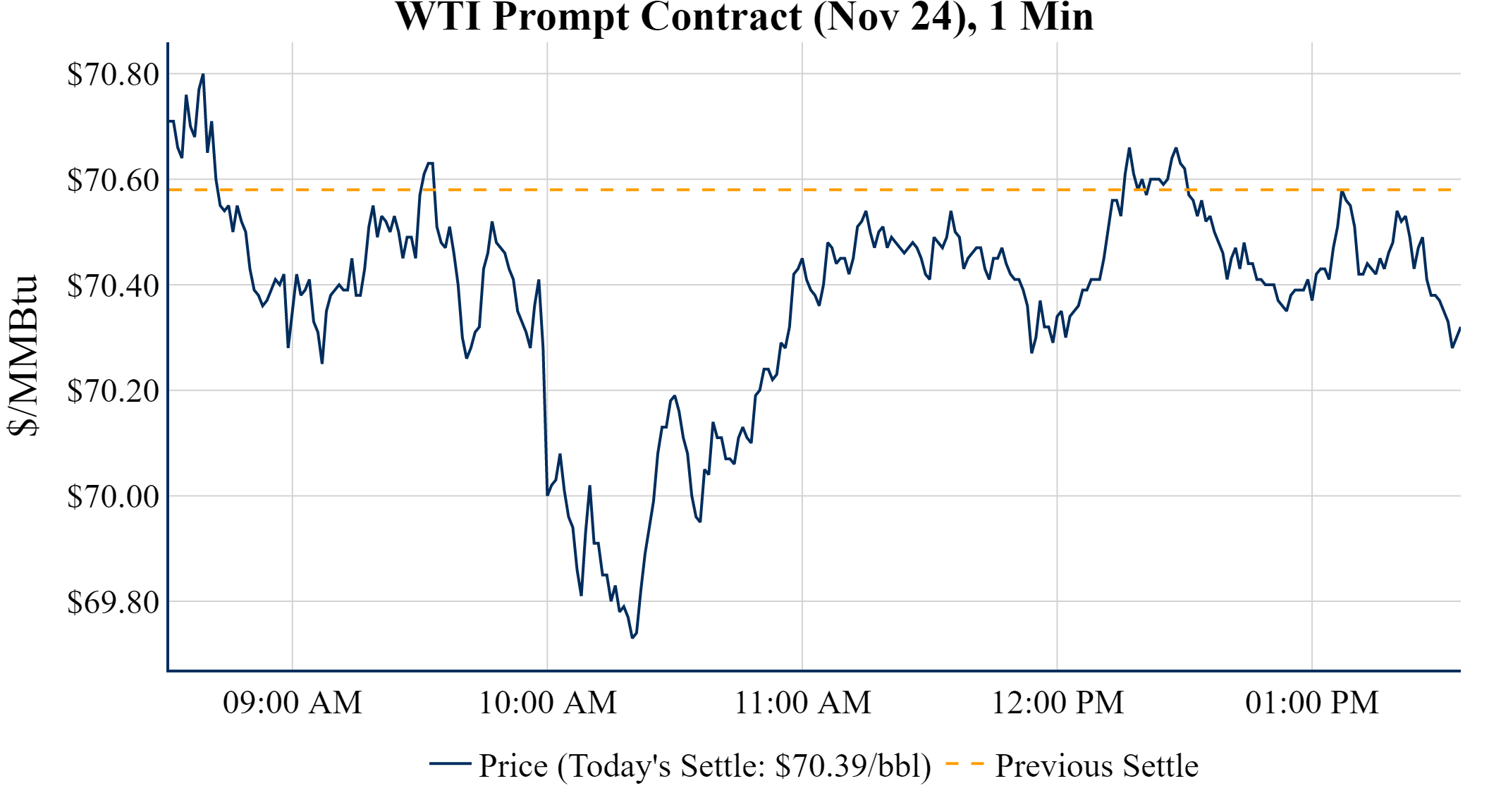 Prompt-Month WTI (Nov 24) was down $-0.19 on the day, to settle at $70.39