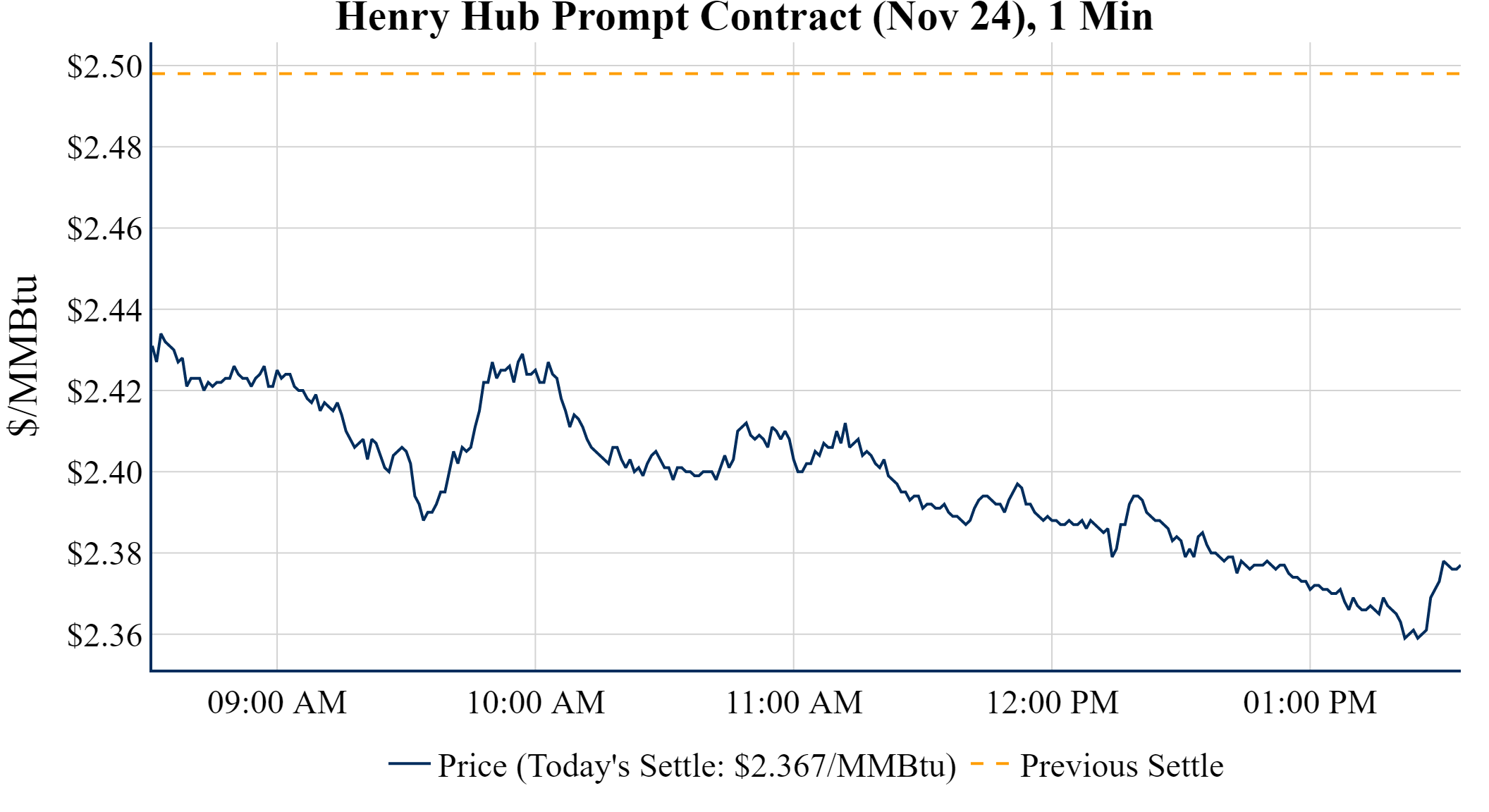 Prompt-Month Henry Hub (Nov 24) was down $-0.131 on the day, to settle at $2.367