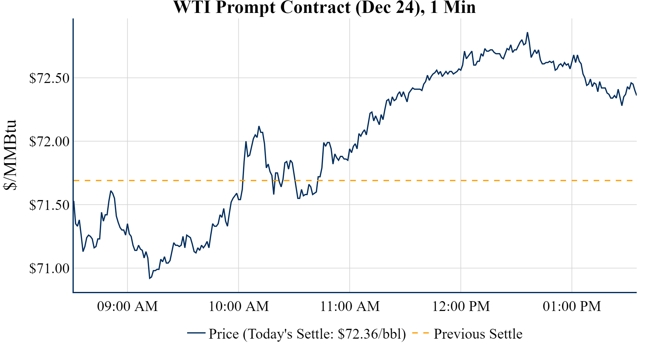 Prompt-Month WTI (Dec 24) was up $0.67 on the day, to settle at $72.36