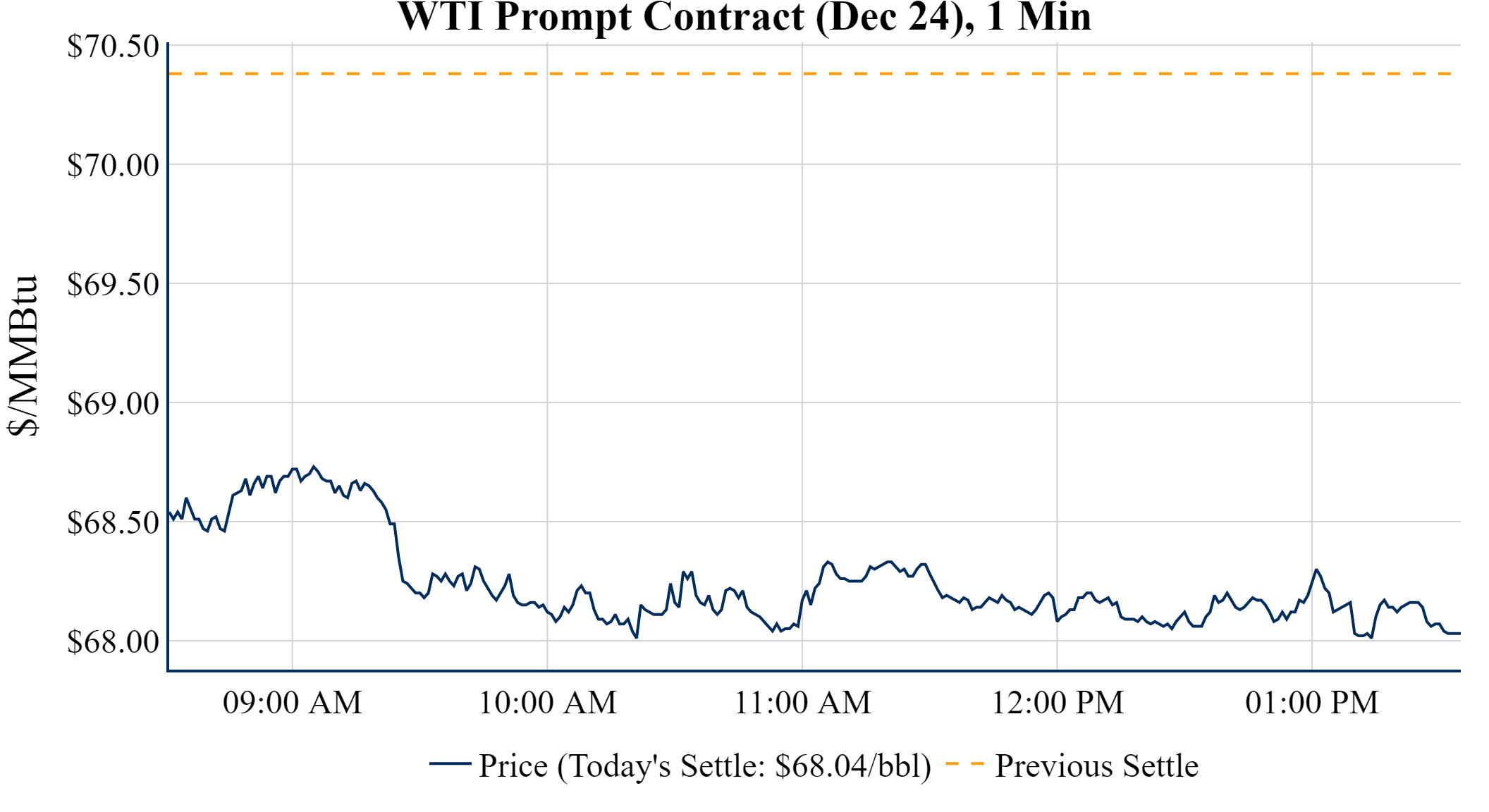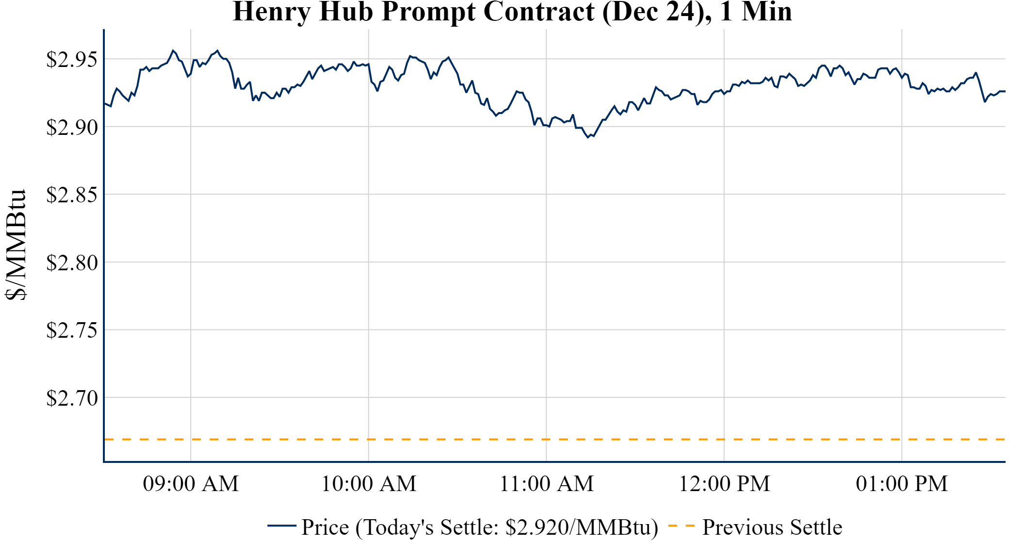 Prompt-Month Henry Hub (Dec 24) was up $0.251 on the day, to settle at $2.920Prompt-Month WTI (Dec 24) was down $-2.34 on the day, to settle at $68.04