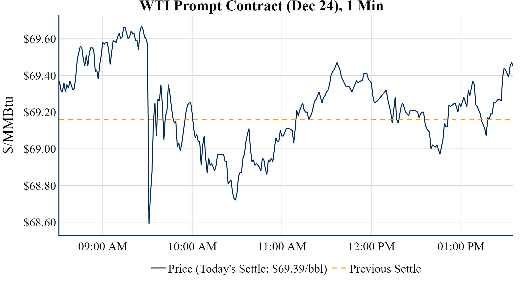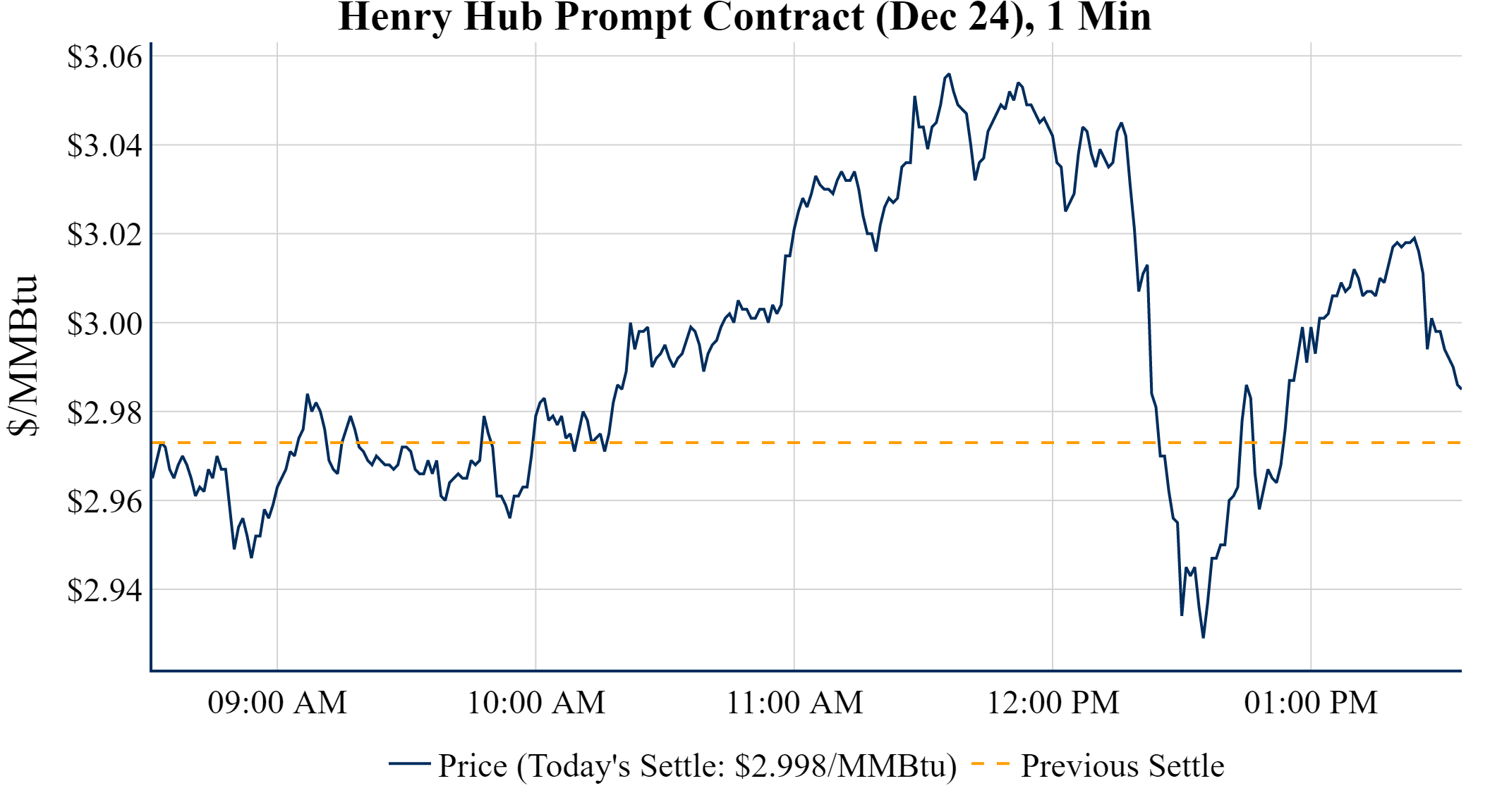 Prompt-Month Henry Hub (Dec 24) was up $0.025 on the day, to settle at $2.998Prompt-Month WTI (Dec 24) was up $0.23 on the day, to settle at $69.39