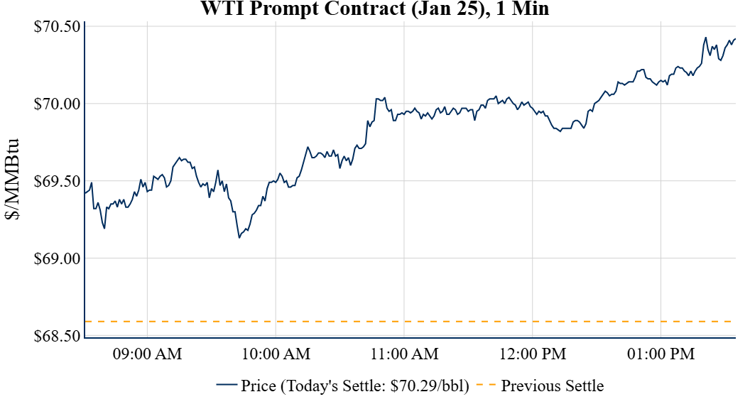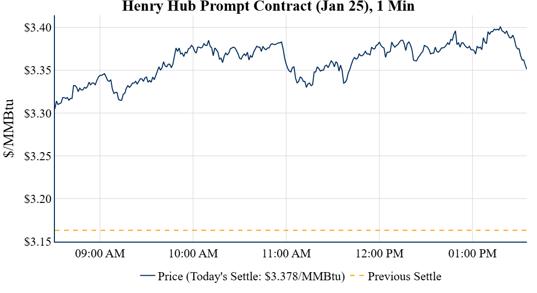 Prompt-Month Henry Hub (Jan 25) was up $0.215 on the day, to settle at $3.378Prompt-Month WTI (Jan 25) was up $1.70 on the day, to settle at $70.29