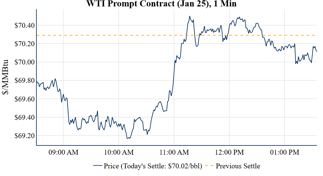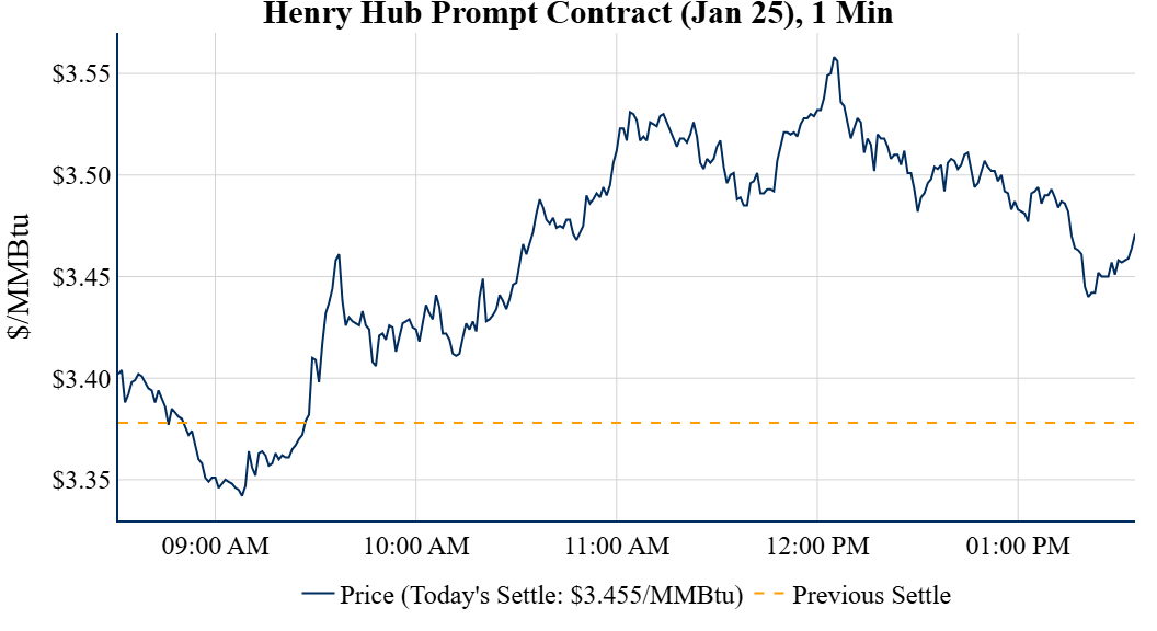 Prompt-Month Henry Hub (Jan 25) was up $0.077 on the day, to settle at $3.455Prompt-Month WTI (Jan 25) was down $0.27 on the day, to settle at $70.02