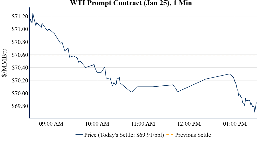 Prompt-Month Henry Hub (Jan 25) was up $0.210 on the day, to settle at $3.584Prompt-Month WTI (Jan 25) was down $0.67 on the day, to settle at $69.91