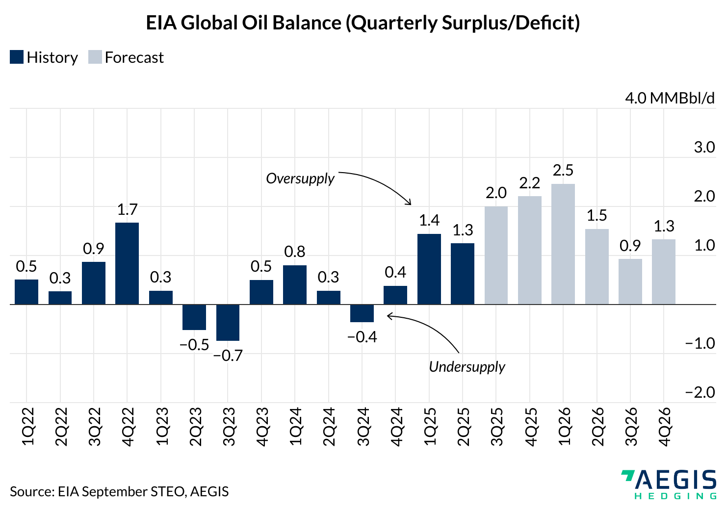 The US Energy Information Administration reinforces this outlook in its latest Short Term Energy Outlook which projects that global oil inventories will rise by an average of 1.7 MMBbl/d in 2025 and 1.6 MMBbl/d in 2026 with the sharpest builds of more than 2 MMBbl/d set to hit late 2025 and early 2026. These forecasts do not yet account for the possibility of faster OPEC+ hikes, meaning the imbalance could prove even larger if the cartel opts to speed the unwind.