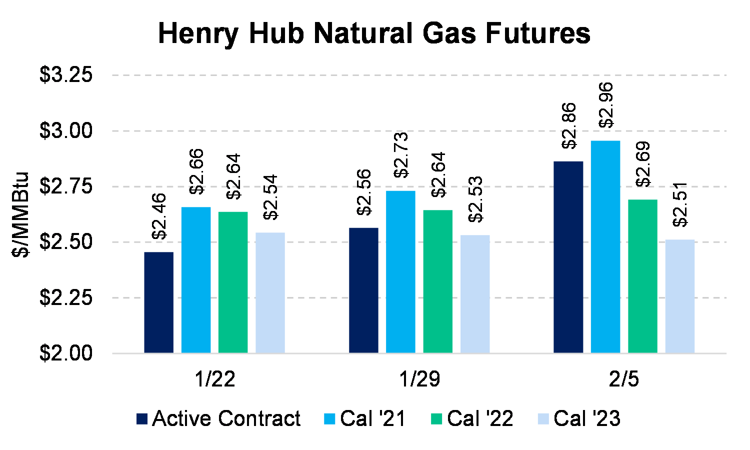 The WTI curve has increased in backwardation as prices in the front of the curve have outpaced those in the back. When backwardation steepens it usually means that the physical market is bid, and demand for crude today is strong. The 12-month March 2021-March 2022 spread was only -$2/Bbl wide a month ago. Now that same spread is -$4.79/Bbl.