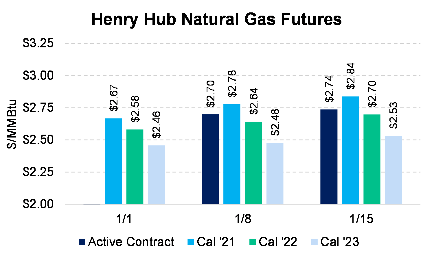 We understand the backwardation (downward slope) of the forward curve makes 2022 pricing much less attractive. The discount of around $2.50 encourages the use of options structures rather than direct, fixed-price hedges achieved through swaps. We do encourage most clients to lock-in 2021 prices aggressively, though.