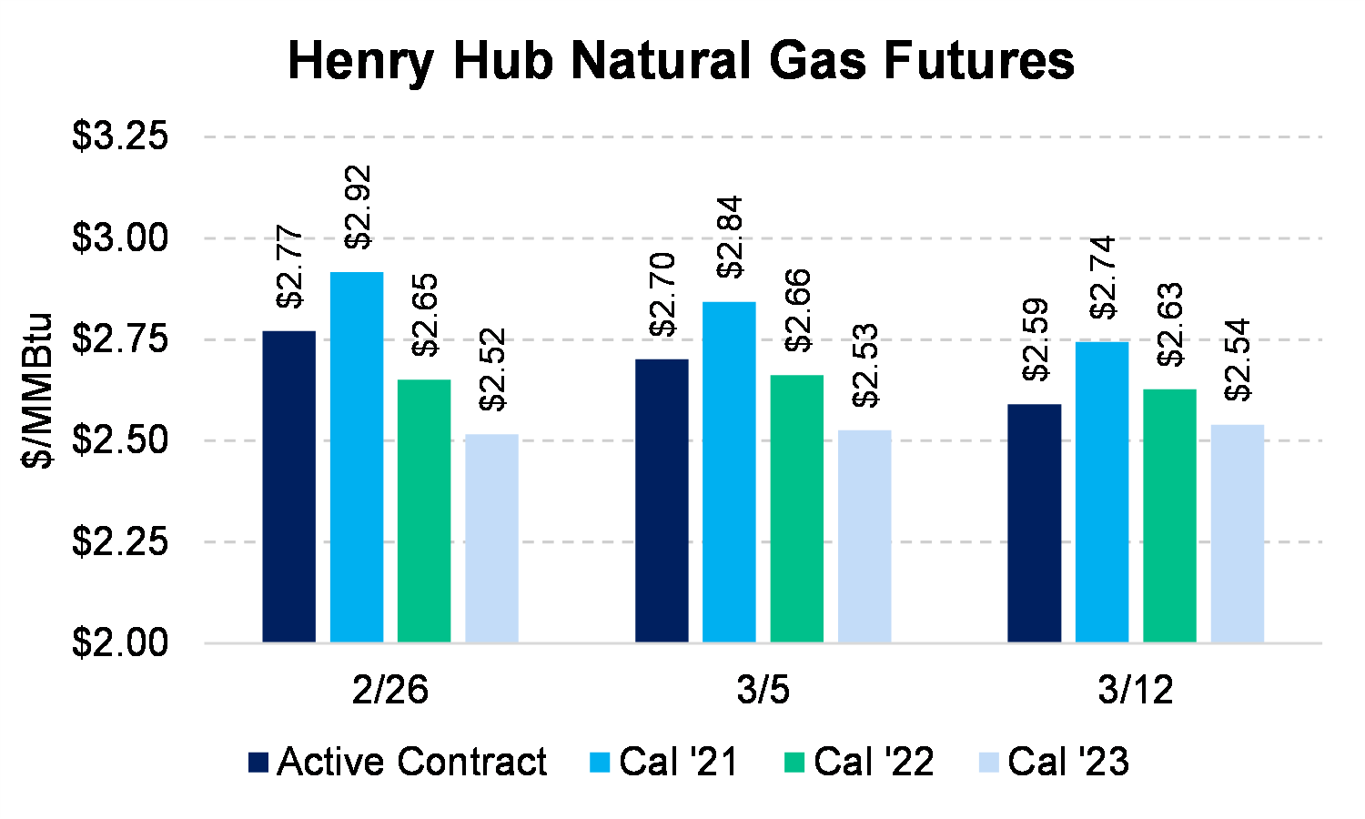 WTI settled Friday near its previous week's settlement of just over $66/Bbl. Missile attacks on Saudi Arabian oil infrastructure Sunday, March 7, sent WTI soaring intraday to $68/Bbl before giving up all gains, plus some after reports showed the attacks did not affect Saudi oil production.