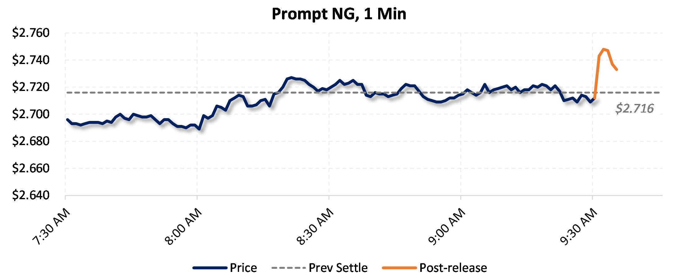 Prices were up in the five minutes following the announcement, to $2.734, from $2.713 just before 9:30am.