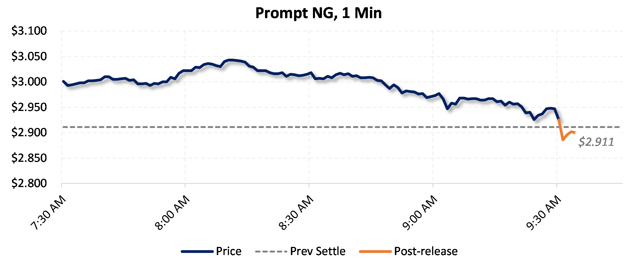 Prices were down in the five minutes following the announcement, to $2.885, from $2.948 just before 9:30am.