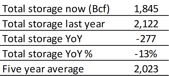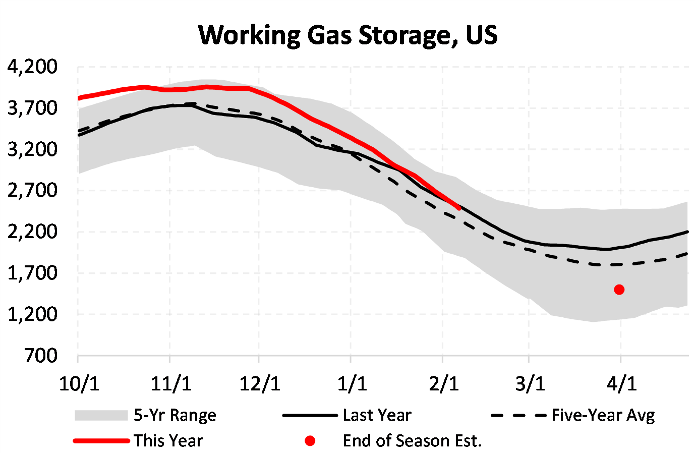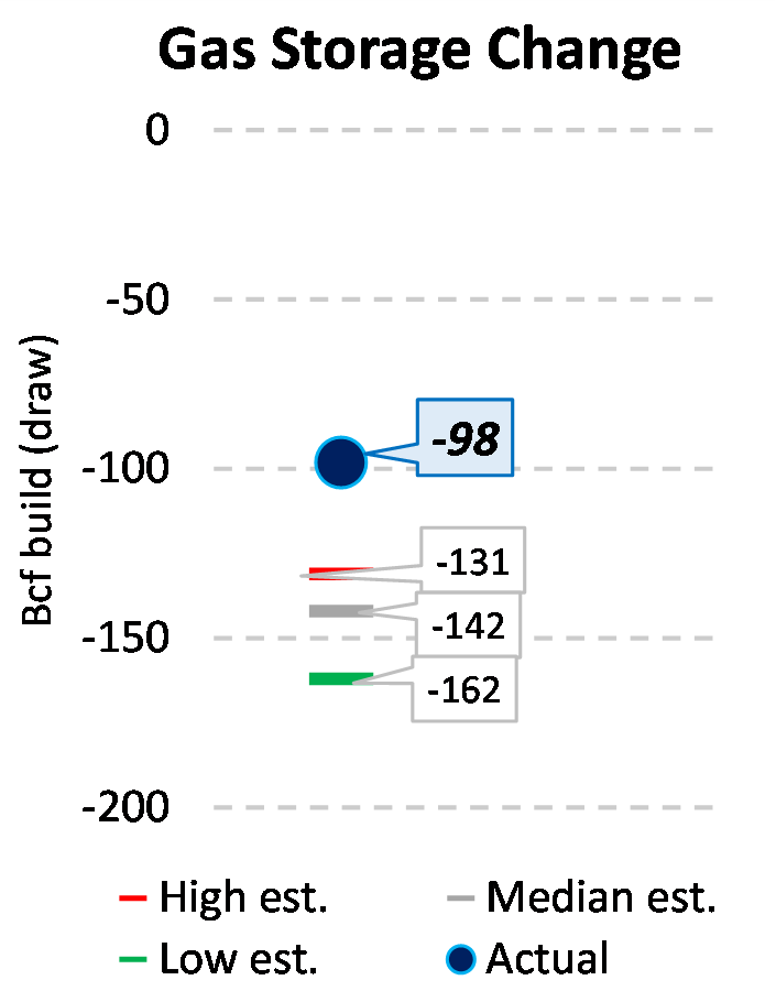 EIA reported a draw of -98 Bcf for the week ending 2/26/2021. This was smaller than the median estimate of -142 Bcf. Today's stat fell outside the expected range, which was -131 Bcf on the more bearish end, and -162 Bcf on the more bullish end.