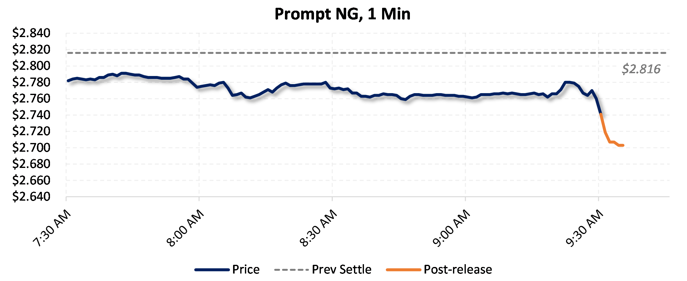 Prices were down in the five minutes following the announcement, to $2.701, from $2.77 just before 9:30am.