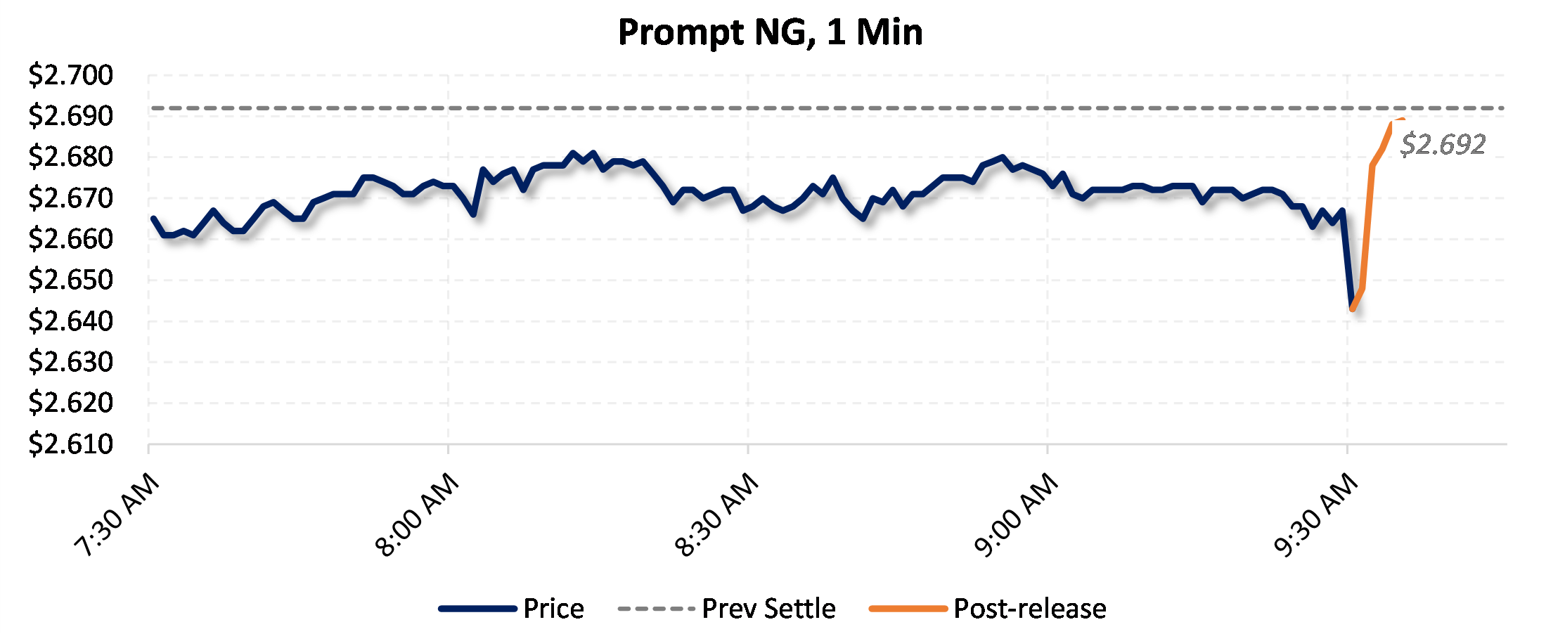 Prices were up in the five minutes following the announcement, to $2.69, from $2.664 just before 9:30am.