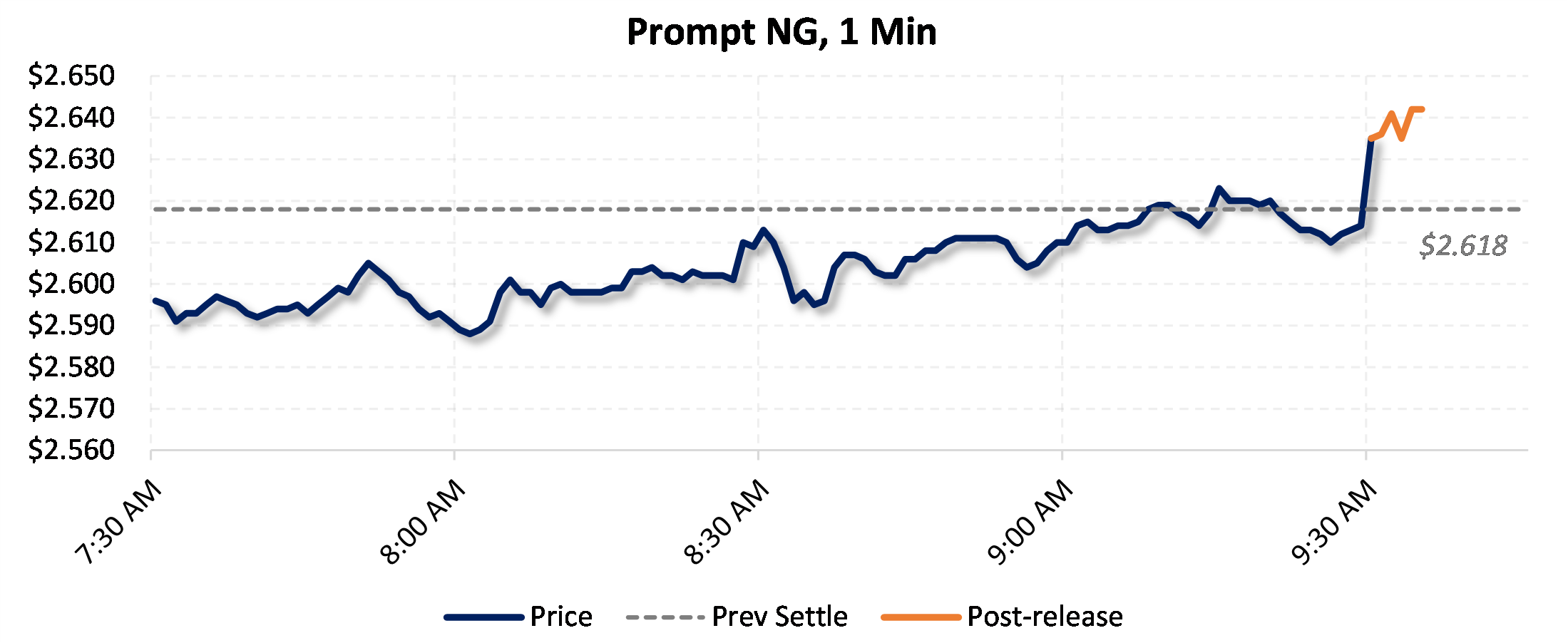 Prices were up in the five minutes following the announcement, to $2.641, from $2.613 just before 9:30am.