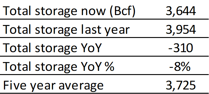 EIA reported a build of 26 Bcf for the week ending 11/12/2021. This was larger than the median estimate of 24 Bcf. Today's stat fell within the expected range, which was 33 Bcf on the more bearish end, and 19 Bcf on the more bullish end.