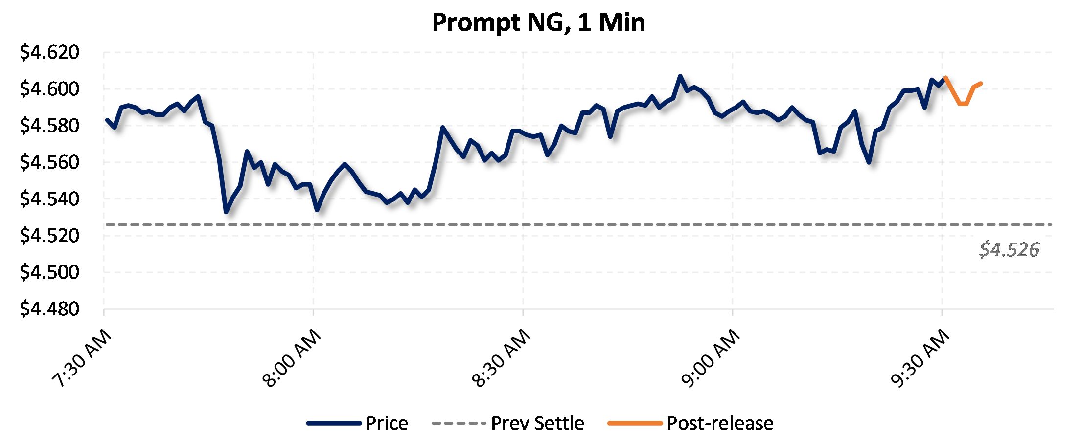 Prices were down in the five minutes following the announcement, to $4.568, from $4.605 just before 9:30am.