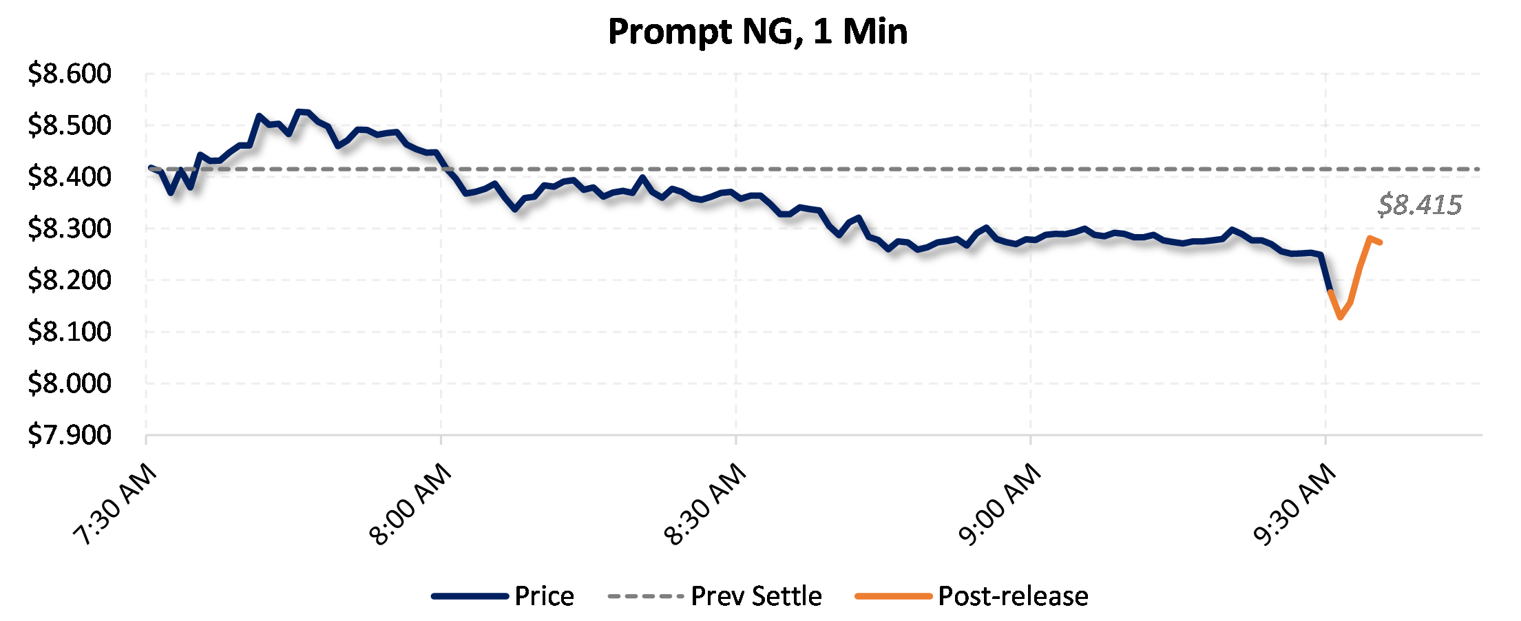 Prices were up in the five minutes following the announcement, to $8.573, from $8.253 just before 9:30am