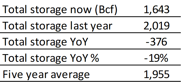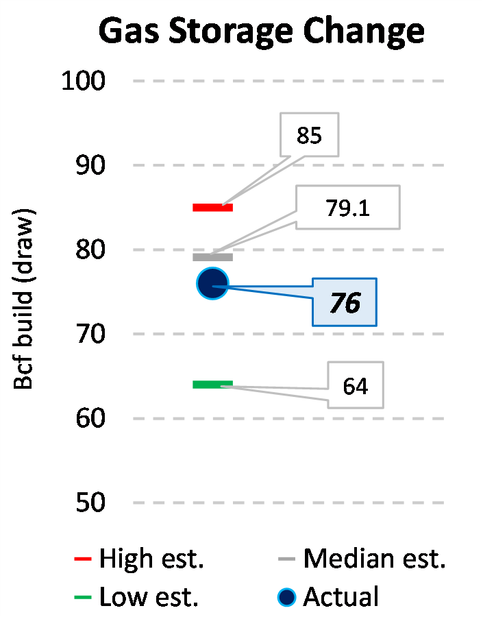 EIA reported a build of 76 Bcf for the week ending 5/06/2022. This was smaller than the median estimate of 79.1 Bcf. Today's stat fell within the expected range, which was 85 Bcf on the more bearish end, and 64 Bcf on the more bullish end.