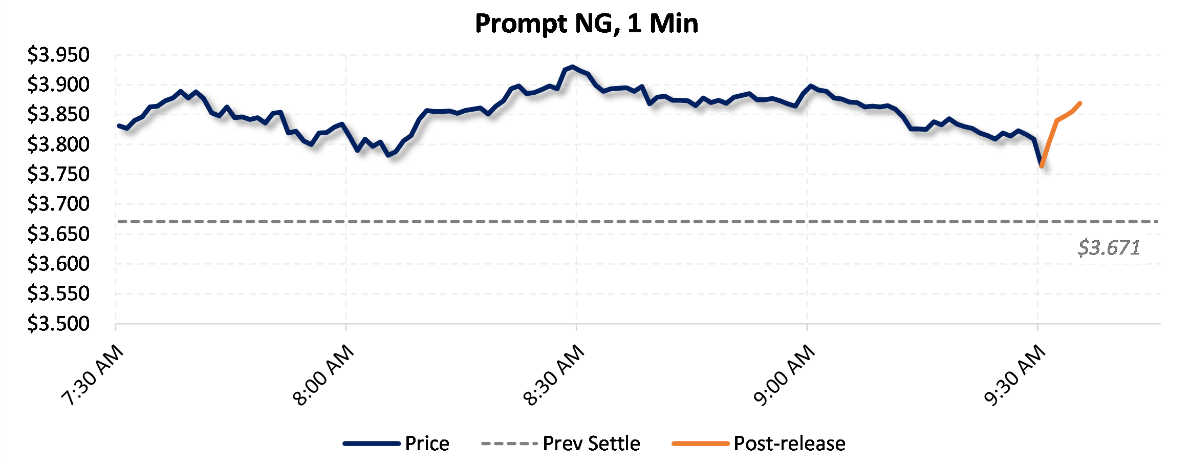 Prices were up in the five minutes following the announcement, to $3.886, from $3.817 just before 9:30am.