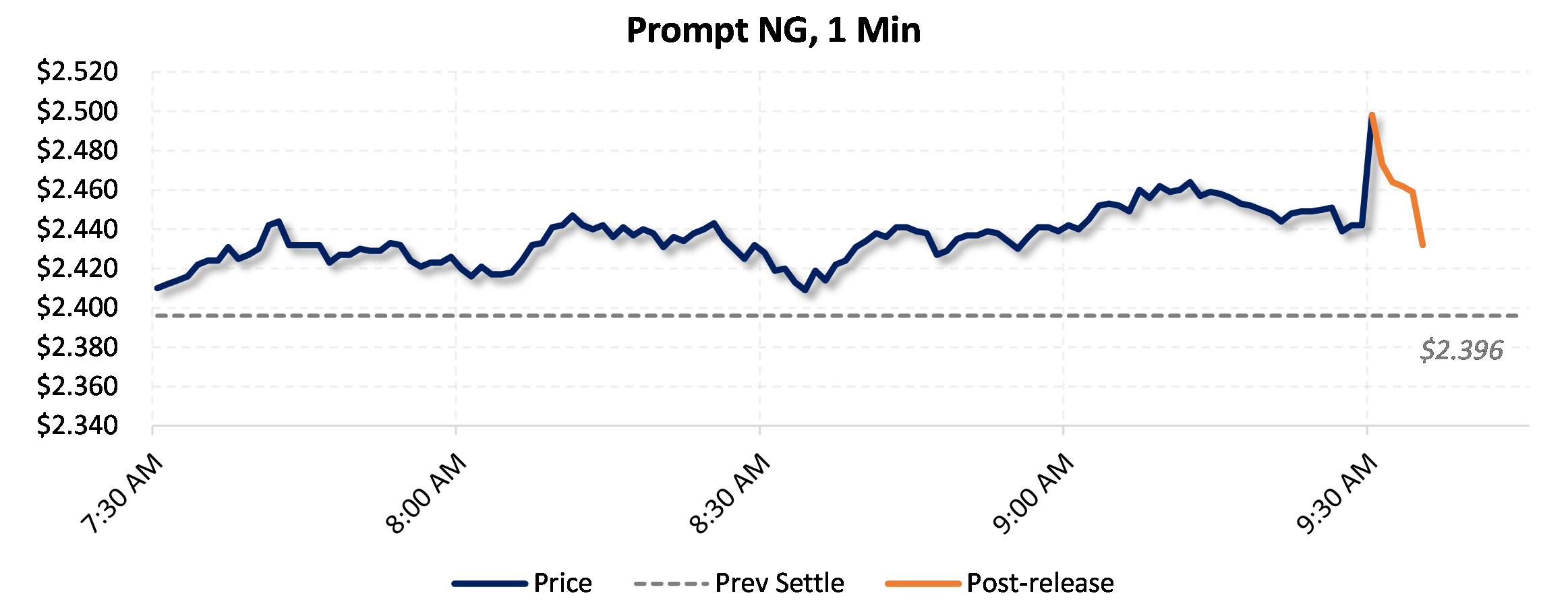 Prices were up in the five minutes following the announcement, to $2.449, from $2.442 just before 9:30am.