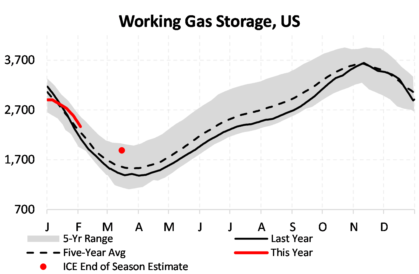 EIA reported a draw of -217 Bcf for the week ending 2/03/2023. This was larger than the median estimate of -201 Bcf. Today's stat fell outside the expected range, which was -188 Bcf on the more bearish end, and -210 Bcf on the more bullish end.