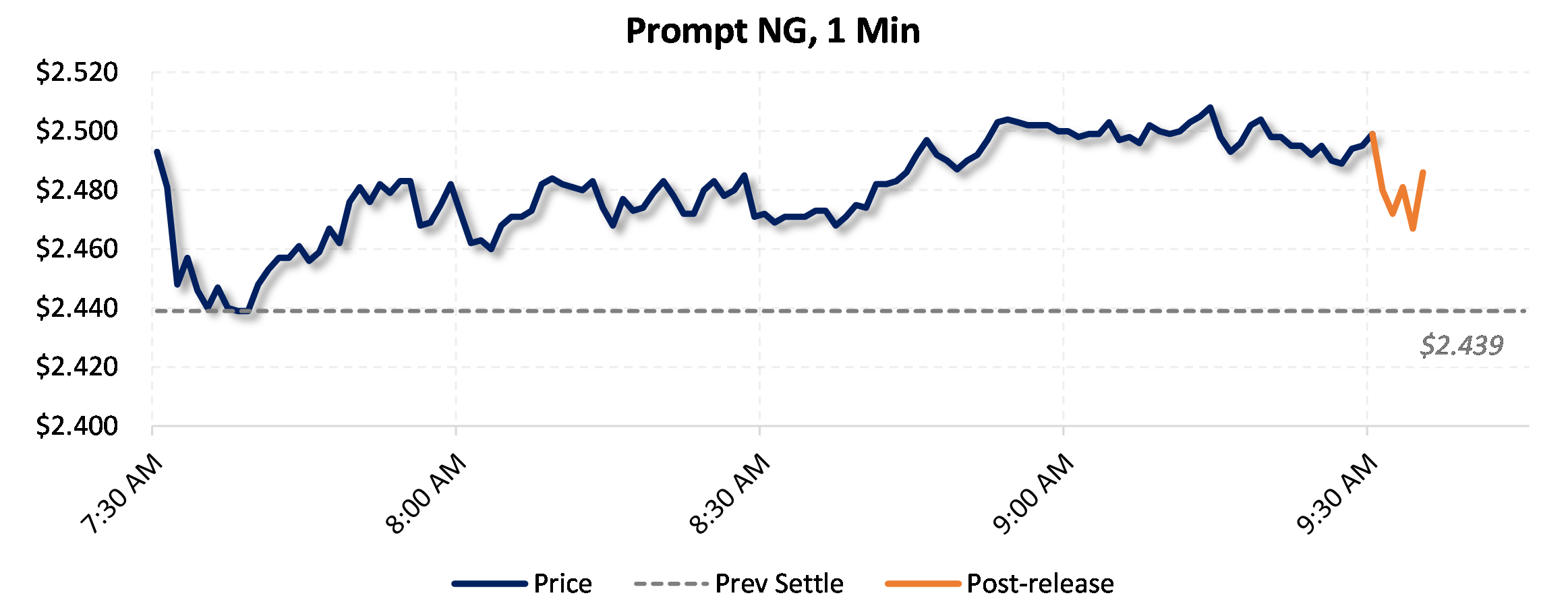 Prices were down in the five minutes following the announcement, to $2.478, from $2.494 just before 9:30am.