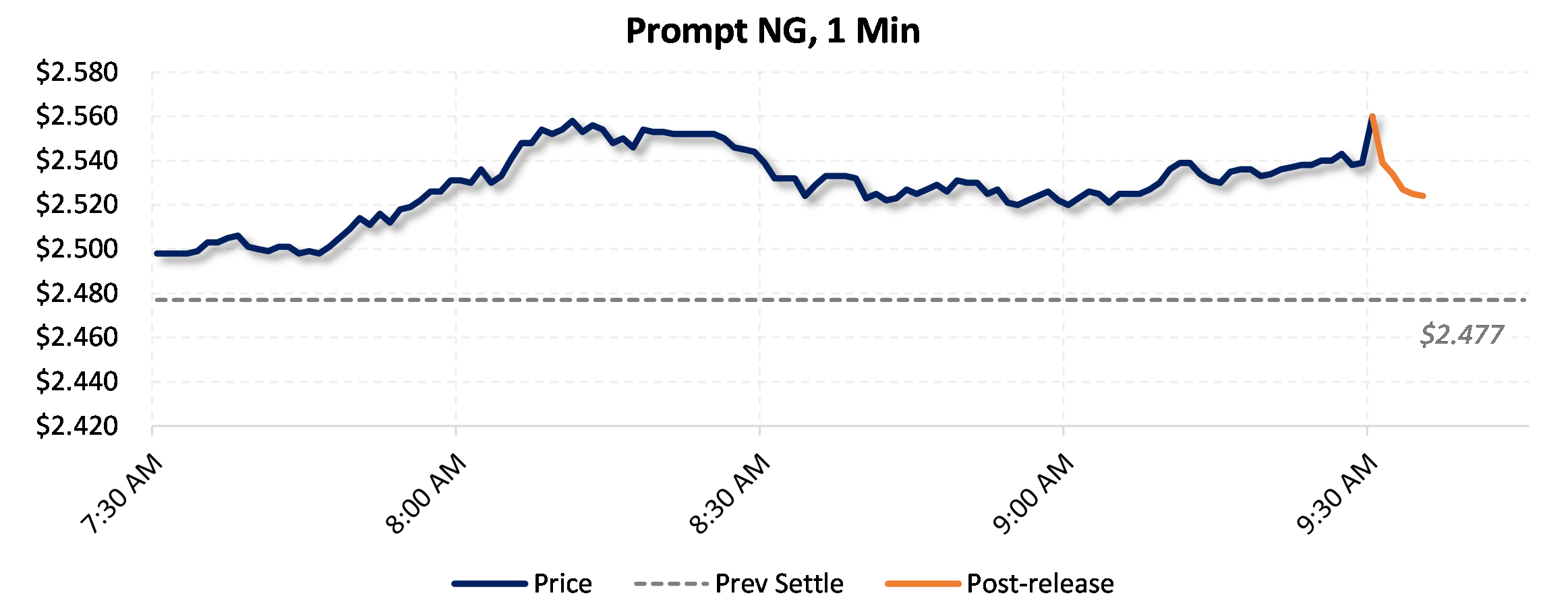 Prices were down in the five minutes following the announcement, to $2.529, from $2.538 just before 9:30am.