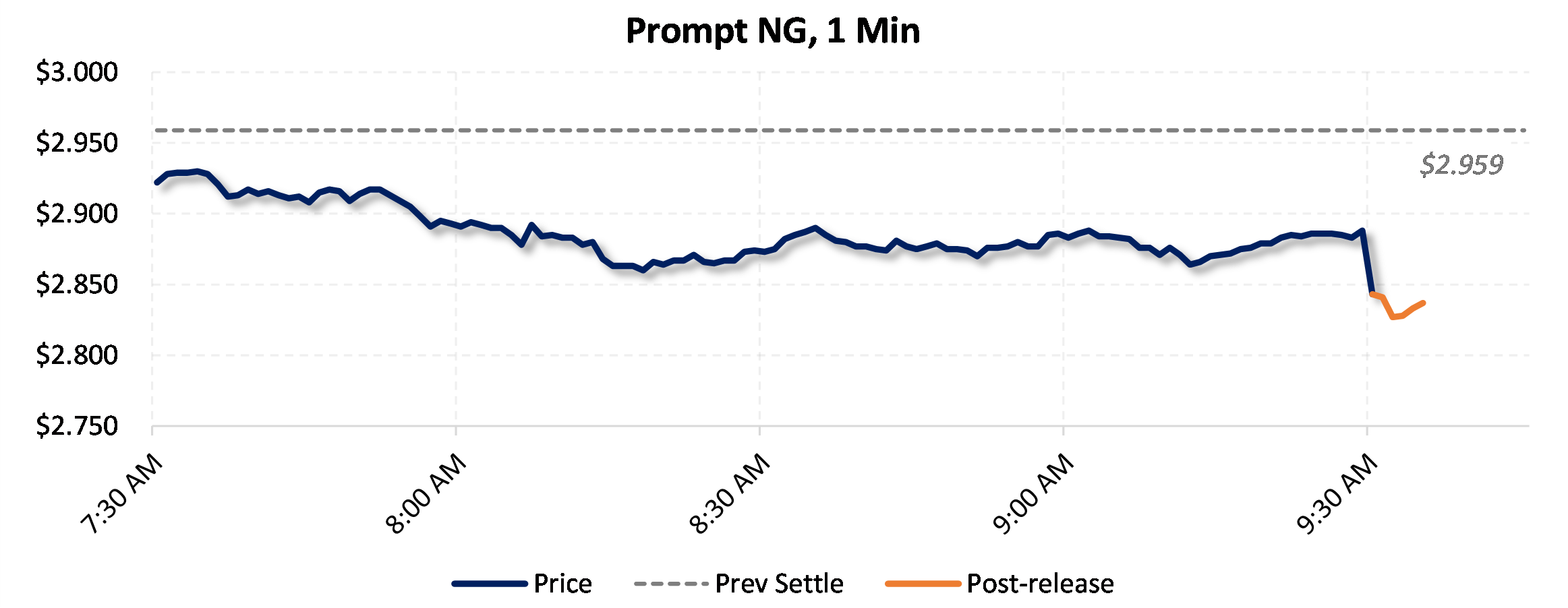Prices were down in the five minutes following the announcement, to $2.818, from $2.883 just before 9:30am.