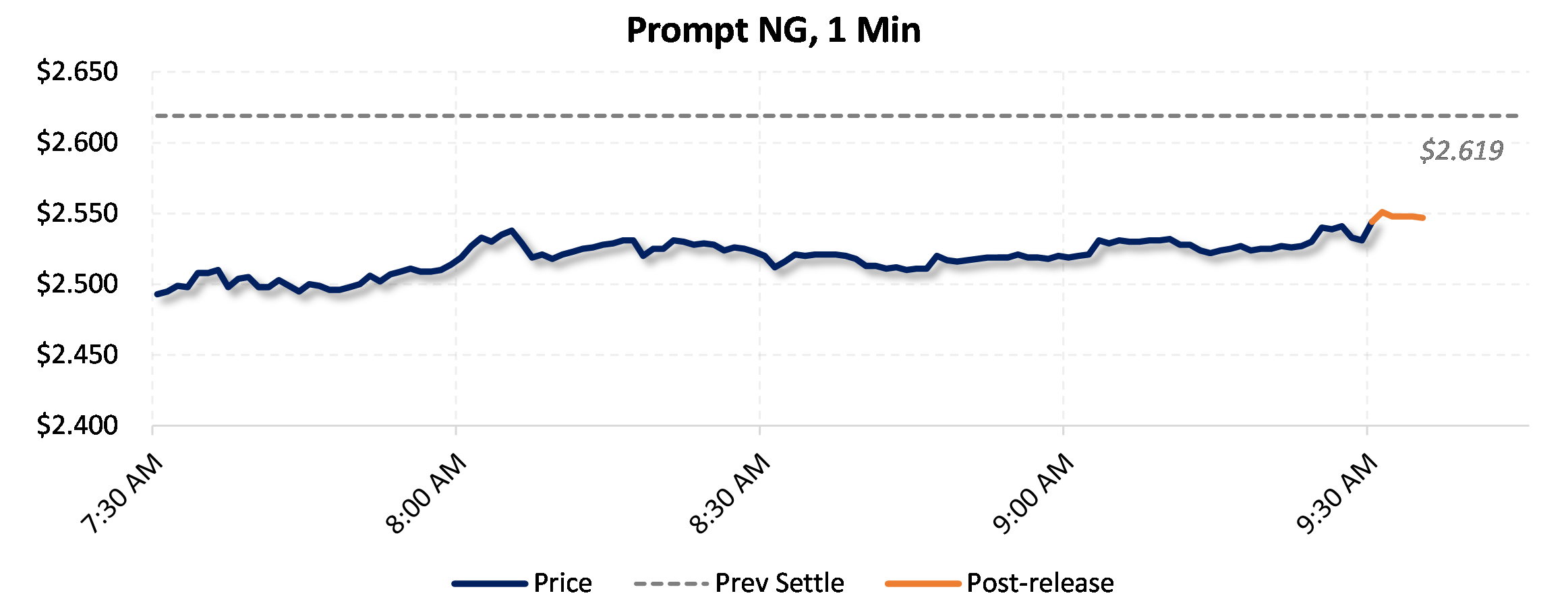 Prices were up in the five minutes following the announcement, to $2.56, from $2.533 just before 9:30am.