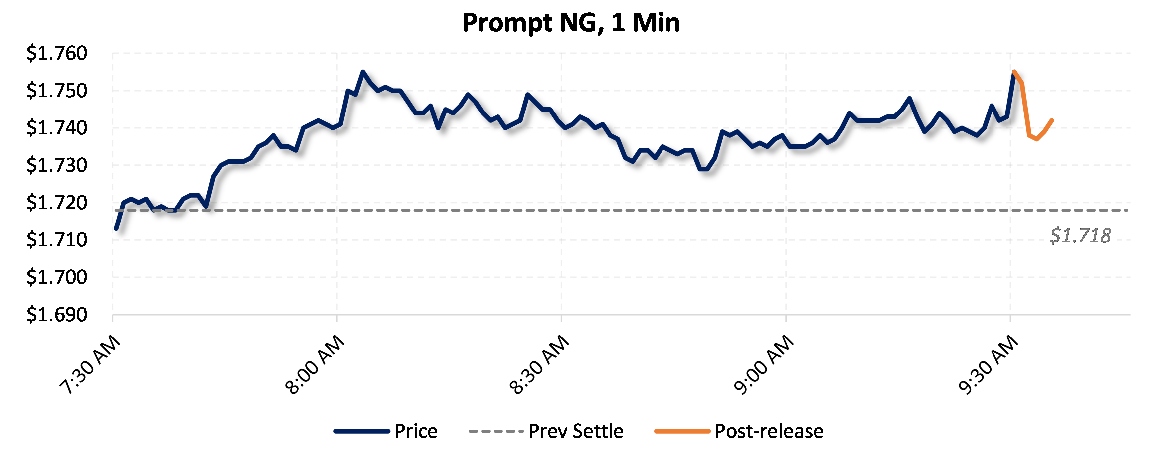 Prices were down in the five minutes following the announcement, to $1.727, from $1.742 just before 9:30am.
